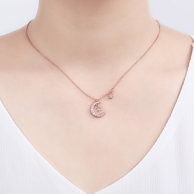 ピンクゴールド 月星ネックレス幸運ネックレス スワロフスキー ネックレス人気 シルバー レディースネックレス 金属アレルギー対応