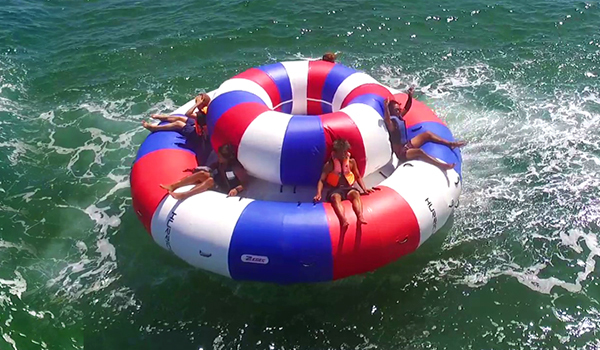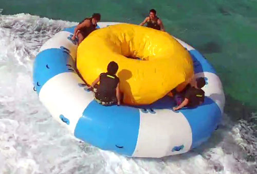 ●ジェットスキーで引っ張り、ハリケーンボートは水上を思い切り回転しながら進みます。