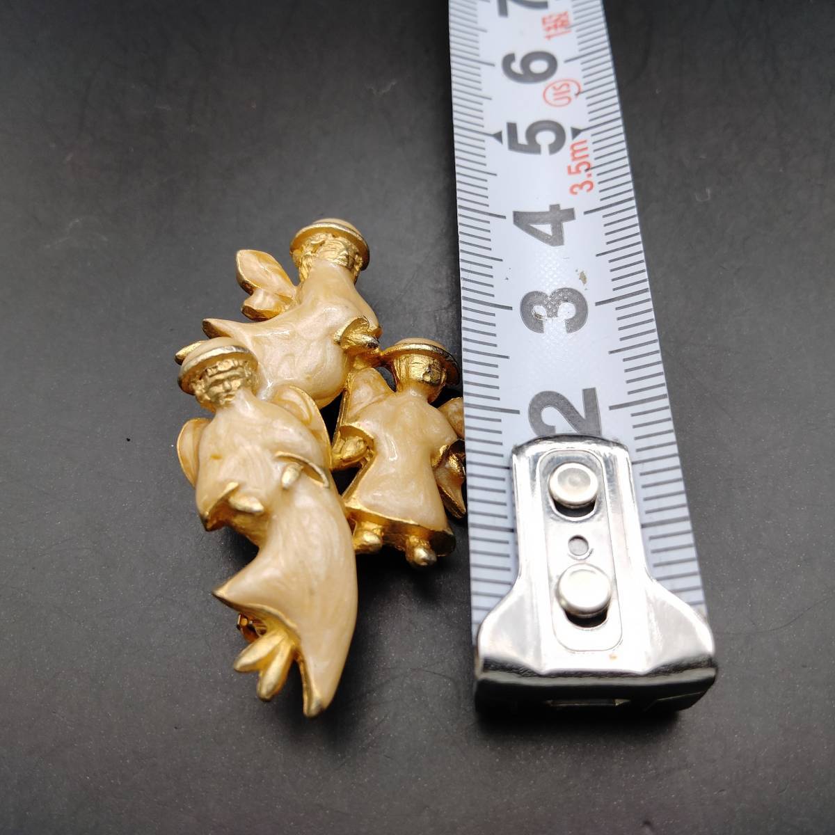 天使 3人 モチーフ 立体 ゴールドトーン ビンテージ ブローチ 昭和レトロ コスチューム ジュエリー 輸入 6S-5