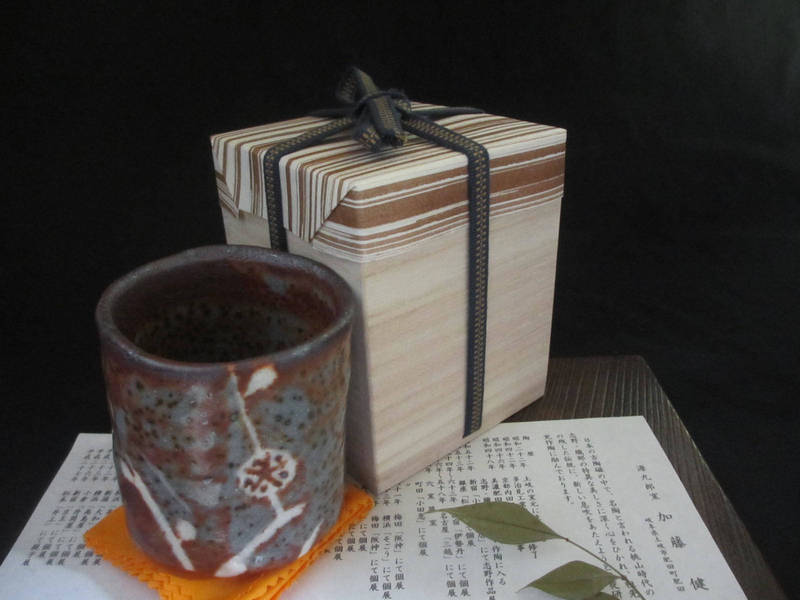 湯呑み 鼠志野 梅紋 湯呑 (共箱) 源九郎窯 加藤健 KA-153