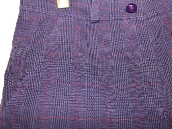●商品詳細● サイズ【平置実寸】(多少の誤差はご了承下さい)Mサイズ:ウエスト38cmヒップ(ジップ下直線)43cm股上24cm股下3cm腿巾26cm カラー パープル(ブラックとレッドの細いライン) 素材 綿100% 生産国 イタリア製