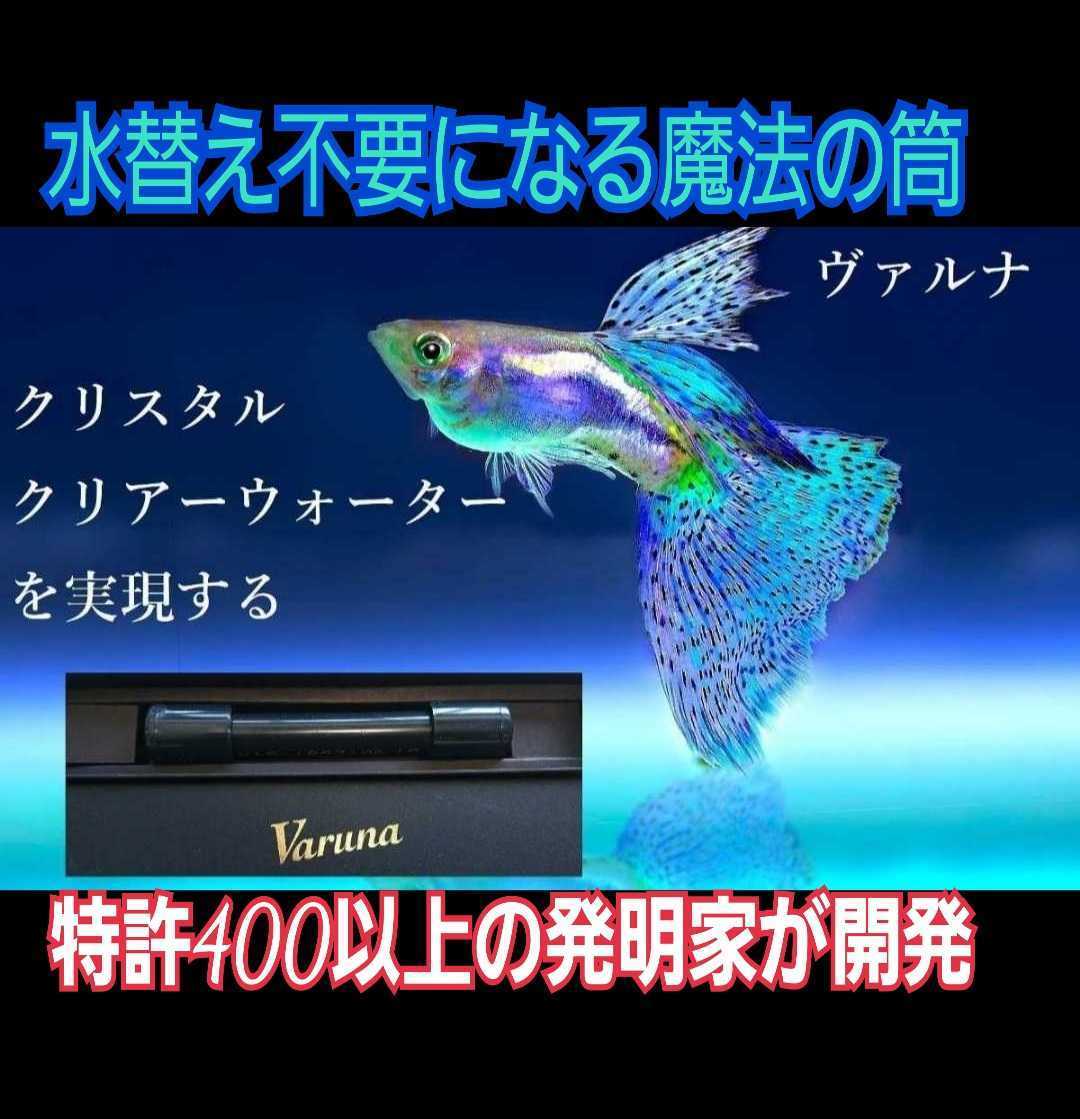 この舟では濾過機をつけてないので吸着したゴミを網で取りましたが濾過機があるとすぐにクリアになります。 亀の舟はとても臭くなるのですがヴァルナを入れてると全く無臭です。 ヴァルナが有害物質を抑制してるからです。 ヴァルナと綿を使った濾過機があれば最強です。 池用ヴァルナは500トンの水を浄化するパワーがあるのです。 ヴァルナは5つのサイズがあります 水量によりサイズを選べます ヴァルナの対応水量 8cm300L 9350円 15cm500L 12100円 23cm1000L 14850円 池用ヴァルナ500トン 33000円 超特大ヴァルナ 800トン 66000円 池用ヴァルナは2種類です。 ヴァルナのサイズは大きいほどパワーが強く浄化スピードも早いです。 小さい水槽に池用ヴァルナを入れても大丈夫です。 NHKや新聞でも多数取り上げられ特許も50以上持っている発明家が作り上げたエネルギー濾過システムです。 ヴァルナのパイプはなんと水道管でできています! なぜ、水道管? そこがポイントなんです! 発明家が言われるには、水道管は土の中に何十年も埋められて、水を送るためにある材料なので、何十年経過しても私たちが水を飲めるほど、害がないことが立証された材料なんだそうです。 なので、生き物に対して無害が証明された素晴らしい材料なので、水道管を敢て使うそうです。 バクテリアとか、成分による濾過ではなく、波動という分野の商品ですから、生物に合わないということがありません。 アロワナの飼育者が絶賛しています