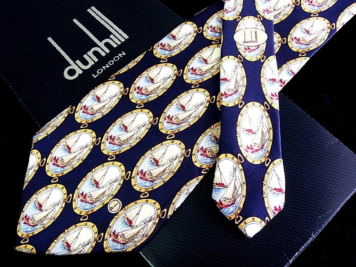 ★今週の特売★3305★高級ブランド【キャラ柄】★ダンヒル【船 ヨット 額縁 dロゴ 柄】ネクタイ★