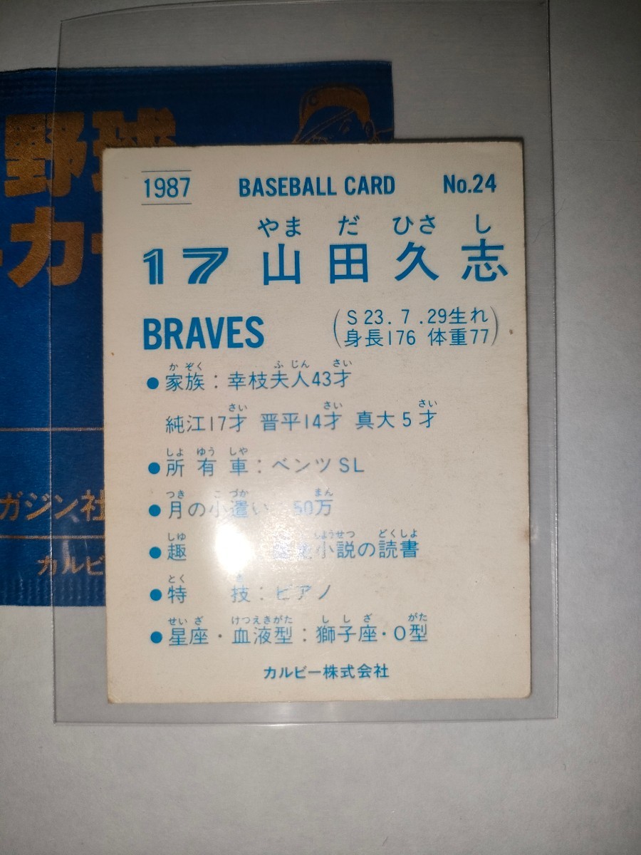 山田久志 87 カルビープロ野球チップス No.24 阪急ブレーブス