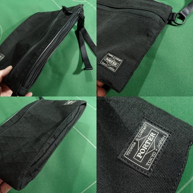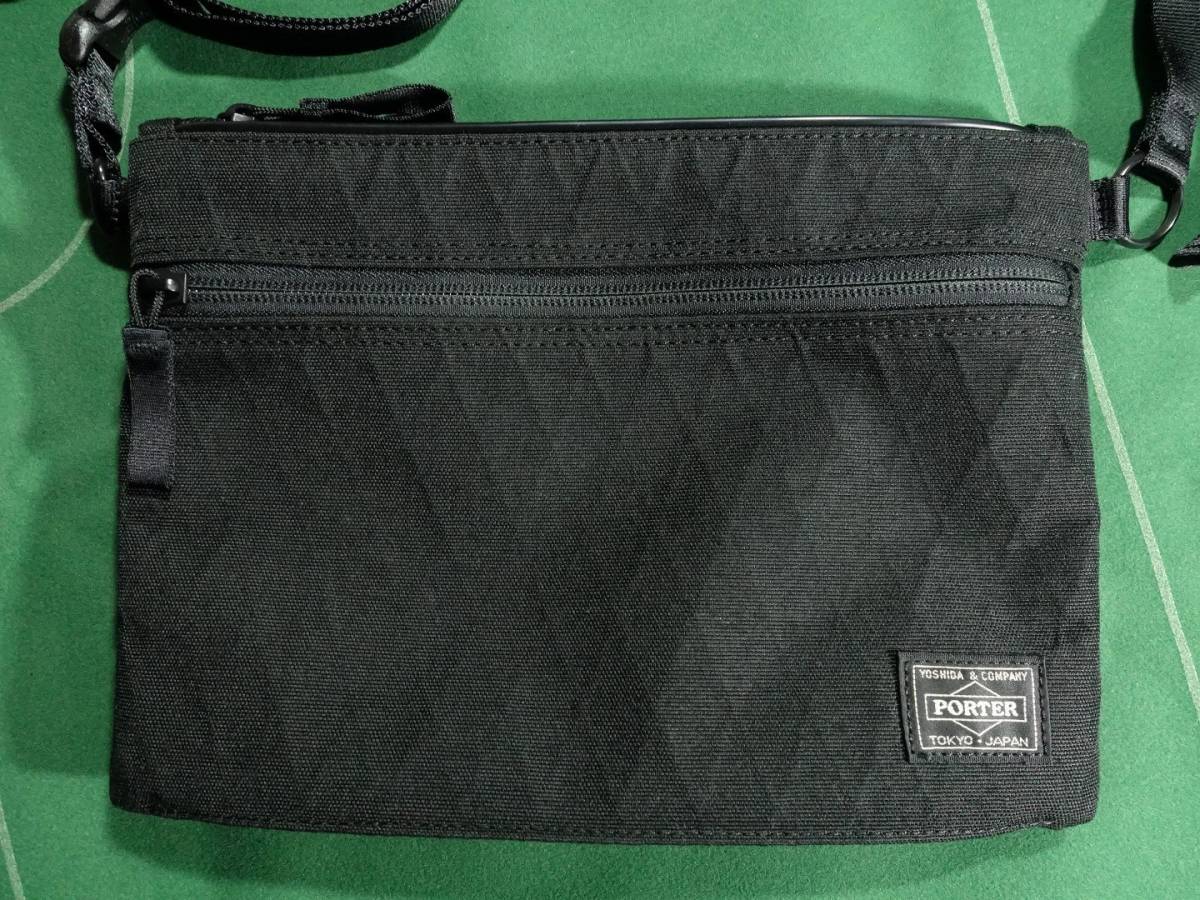 □ポーター HYBRID X-PACコーデュラナイロン素材 薄型 ショルダーバッグ サコッシュ ブラック 美品!!!□