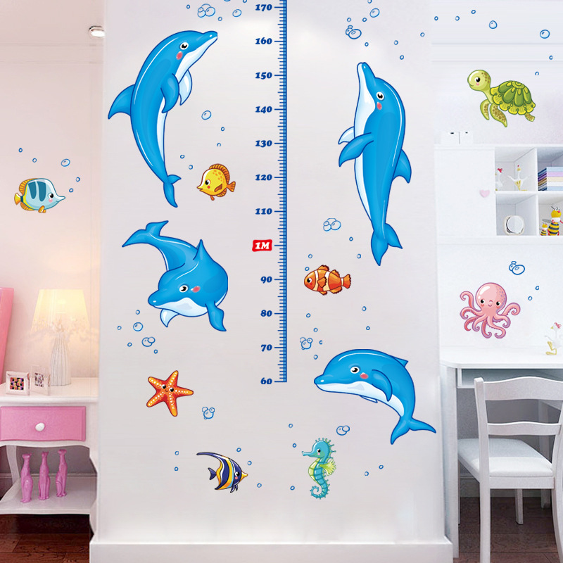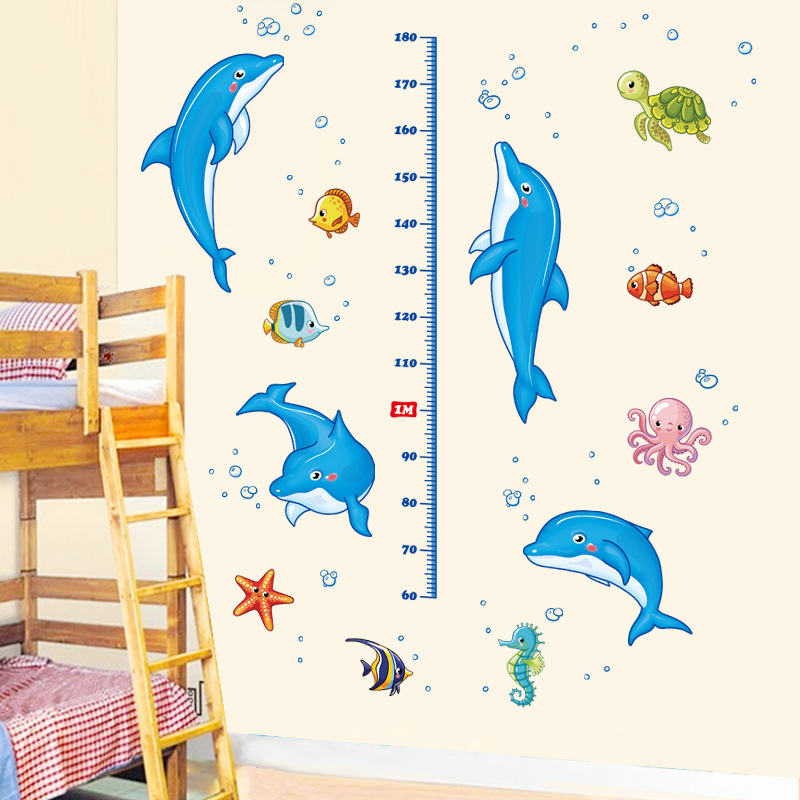 ウォールステッカー YGC011 身長スケール 海 イルカ 癒す DIY 壁紙 インテリアシート 剥がせるシール 送料無料