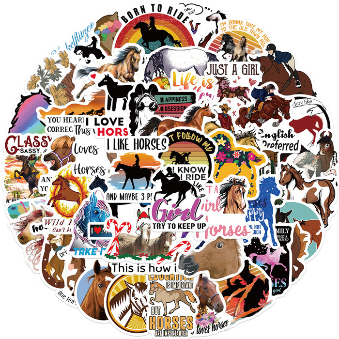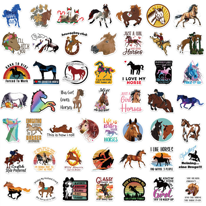 50枚 ステッカー 競馬 乗馬 ジョッキー 馬 防水 耐水 シール 詰め合わせ 0916