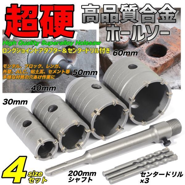 コンクリートドリル セット ホールソー 穴開け sdsプラス 30mm 40mm 50mm 60mm シャフト モンタル レンガ 外壁 ALC コア抜き コアドリル | |||