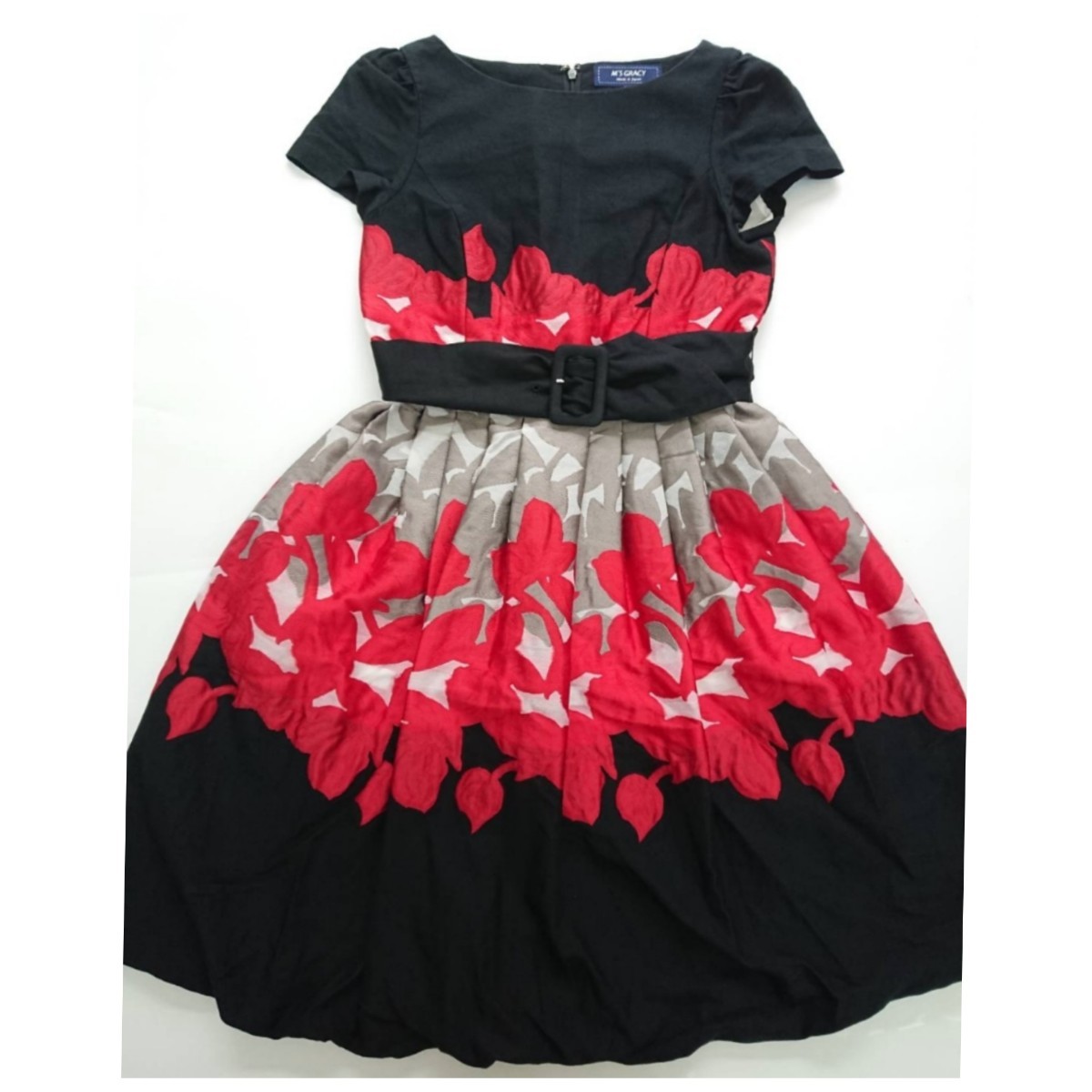 M'S GRACY エムズグレイシー 花柄ジャガードフレアワンピース ベルト付き サイズ36