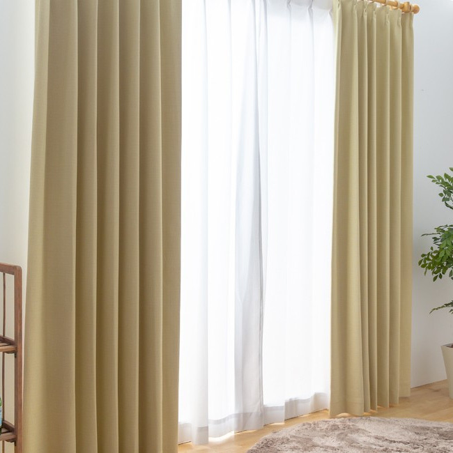 カーテン 幅200cm×丈255cm1枚 サンドベージュ 完全遮光 遮光1級 省エネ 遮音 遮熱 断熱 保温 日本製 形状記憶加工付 246サイズ展開