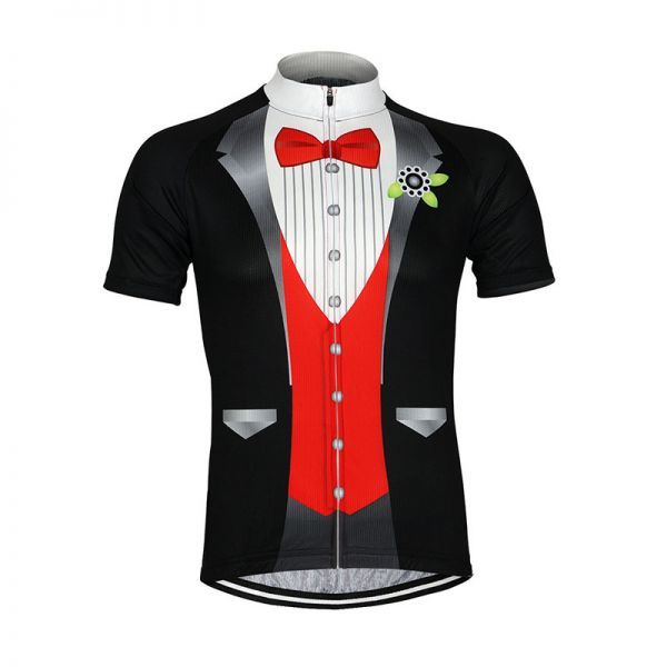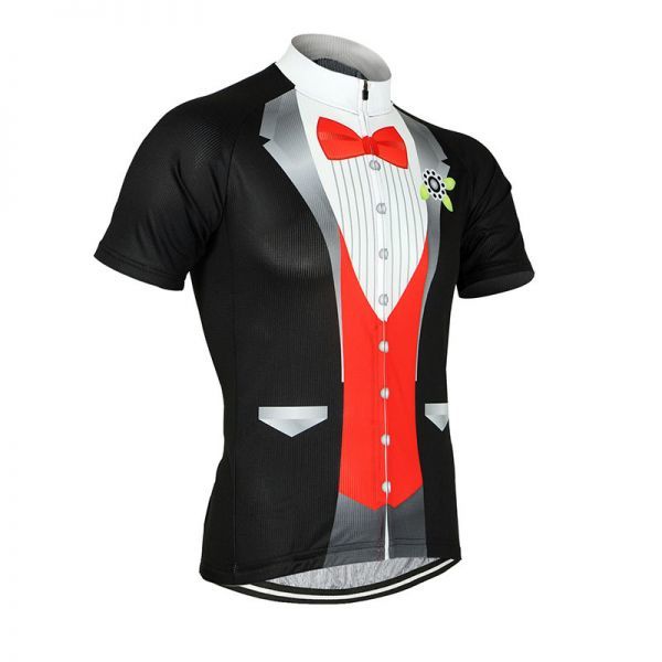 新品 サイクルジャージ Sサイズ タキシード No3 レッド 半袖 フルジップ ウェア メンズ サイクリング スポーツ MTB ロードバイク