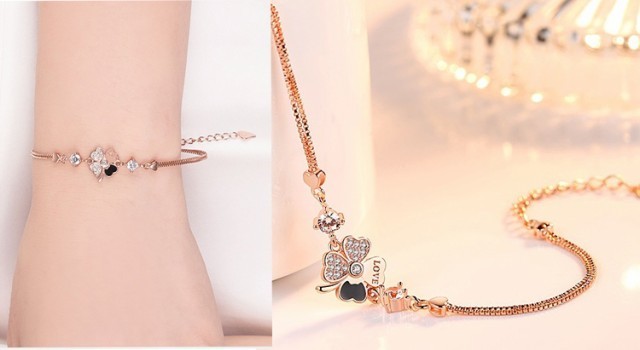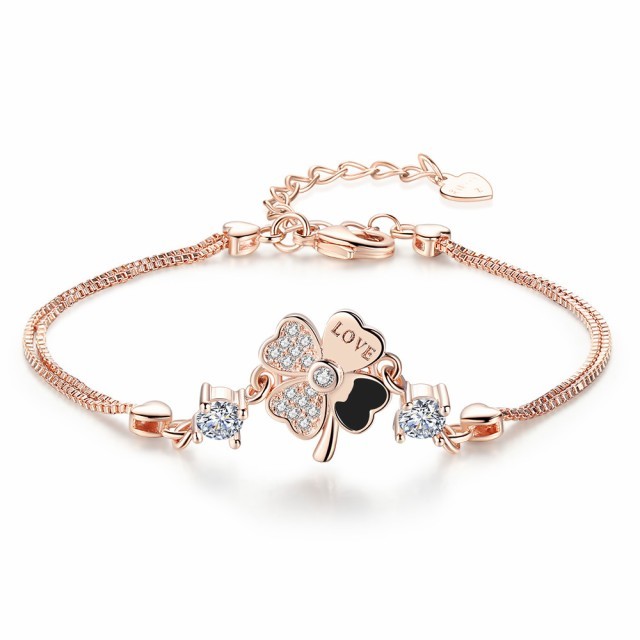 ブレスレット 四つ葉ブレスレット 幸運を呼ぶ四つ葉のクローバー ピンクゴールド