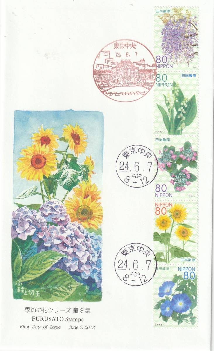 FDC 2012年  季節の花シリーズ  50円80円  2通  絵寺田敬
