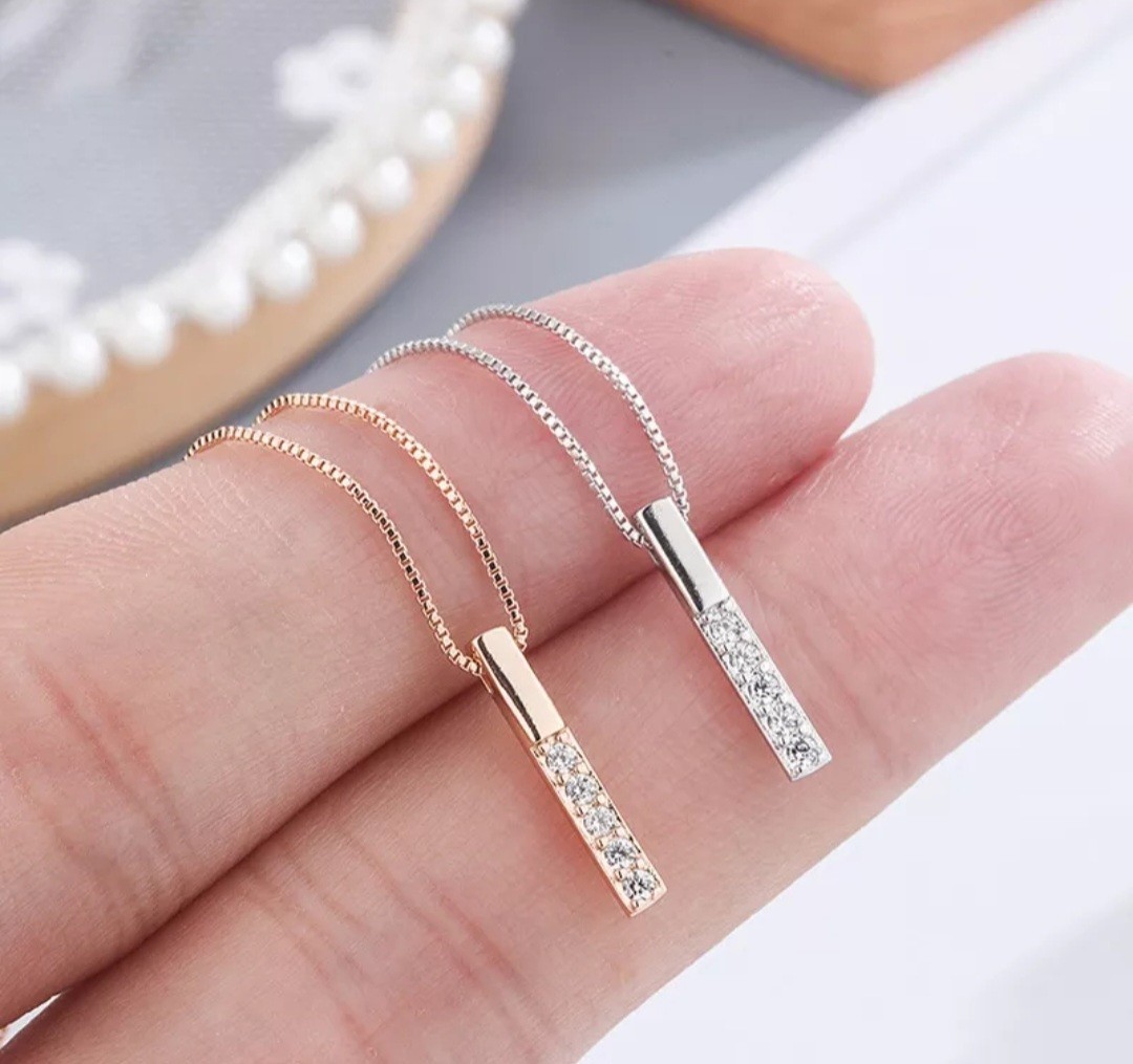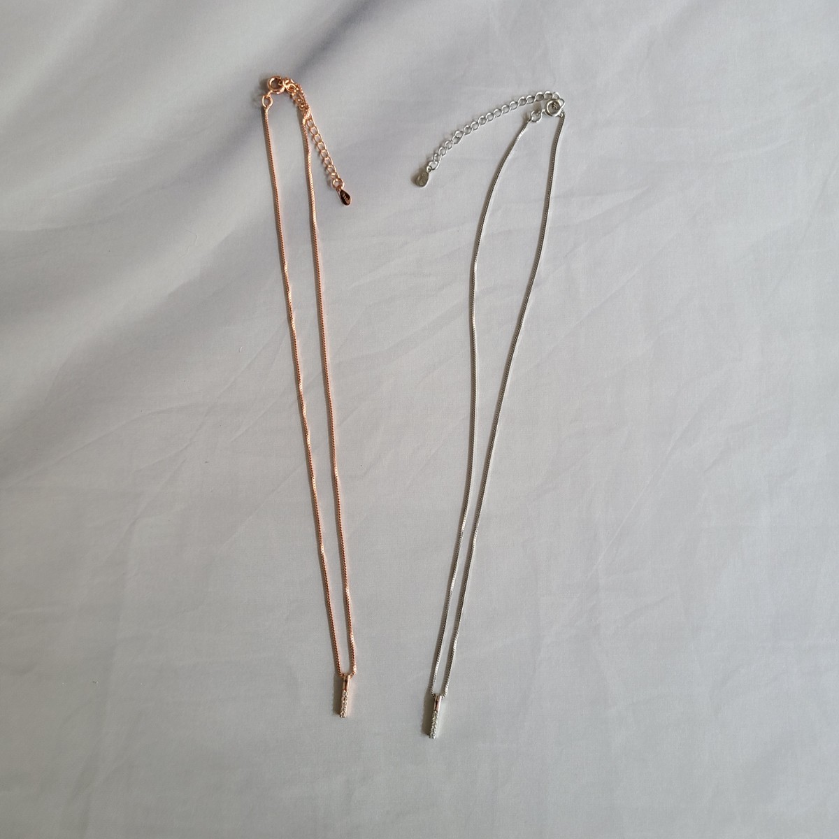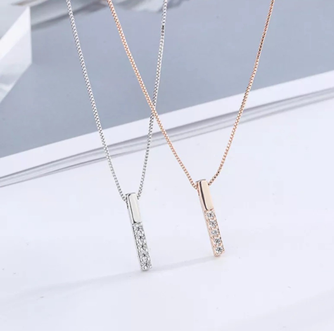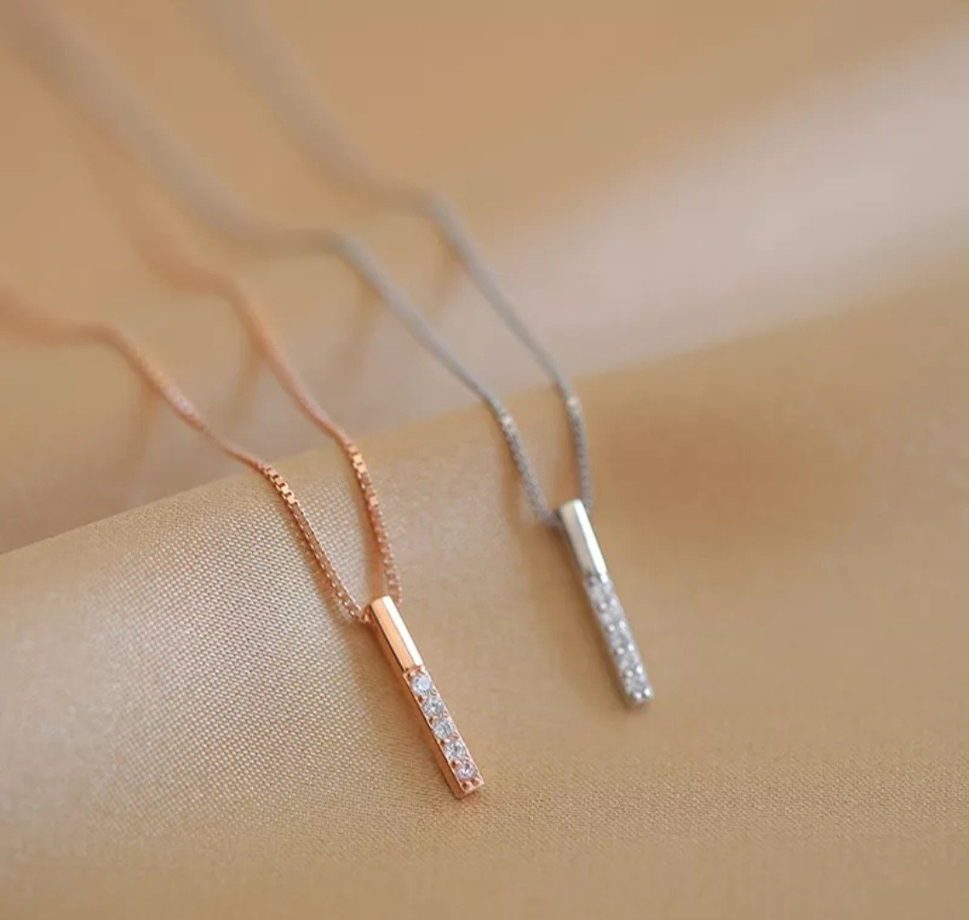 シンプルでクールなピンクゴールドのジルコニアのネックレスです。