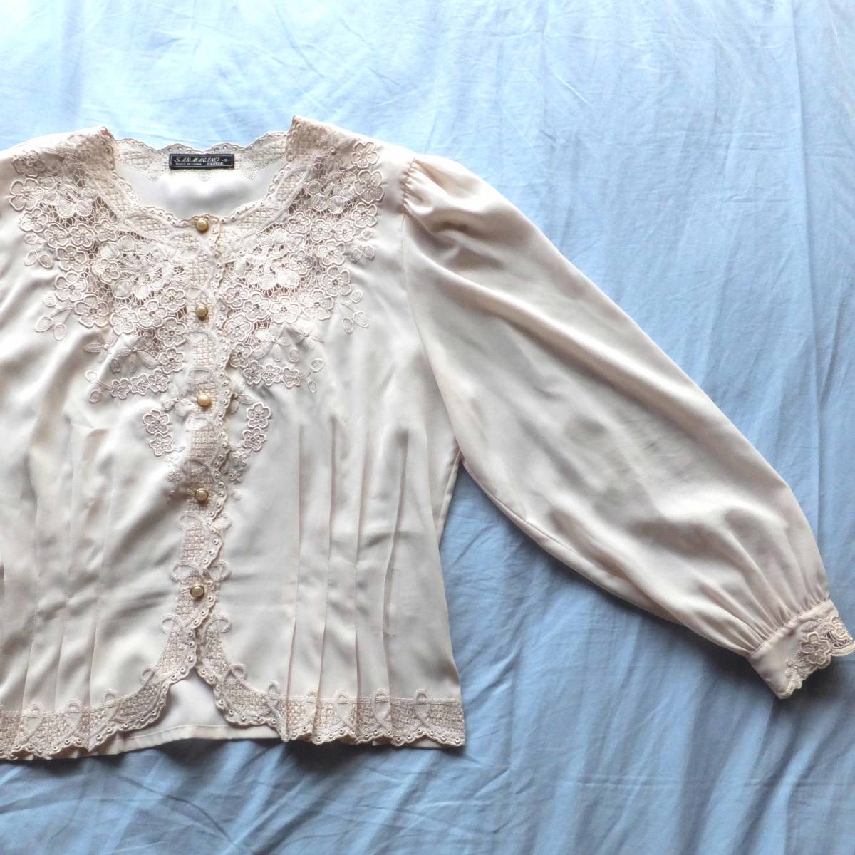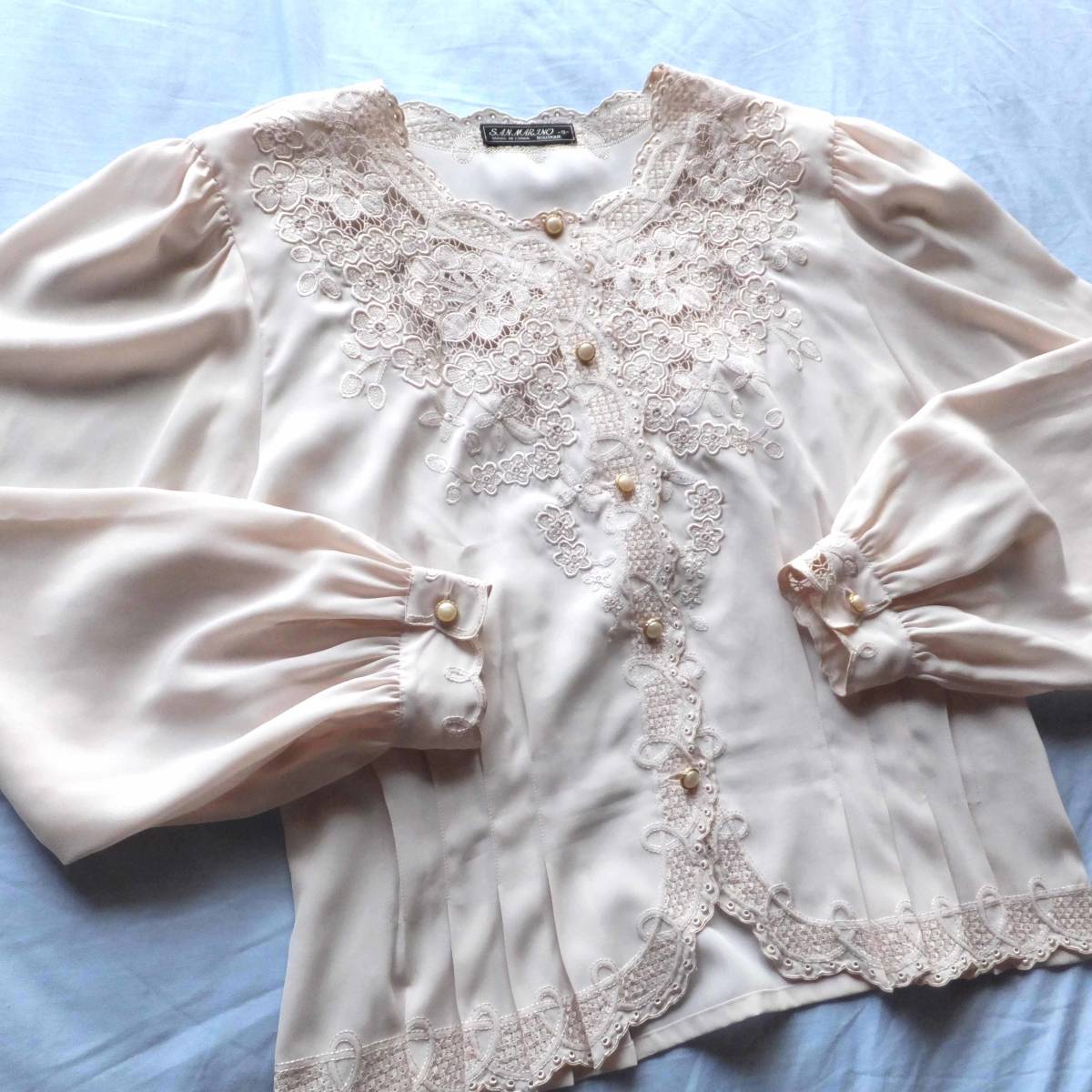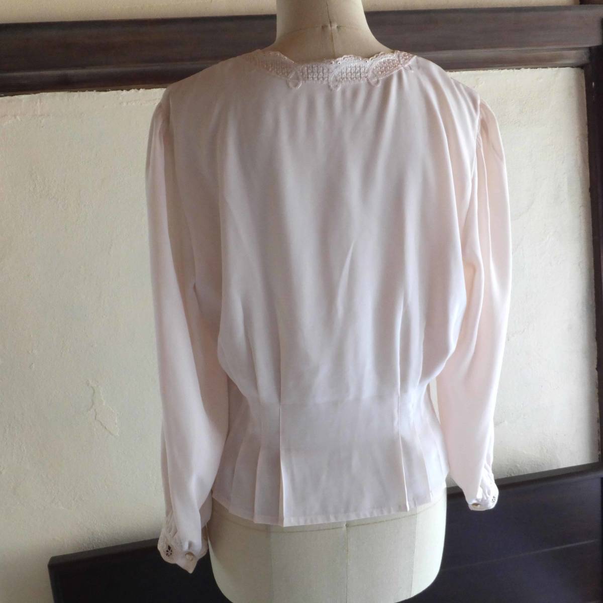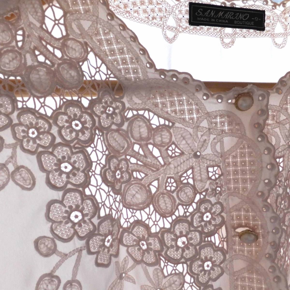 SANMARINO 汕頭風 シルク刺繍 長袖 ブラウス サイズ9 薄ピンク ポリエステル100%生地 レディース 透かし模様 ヴィンテージ