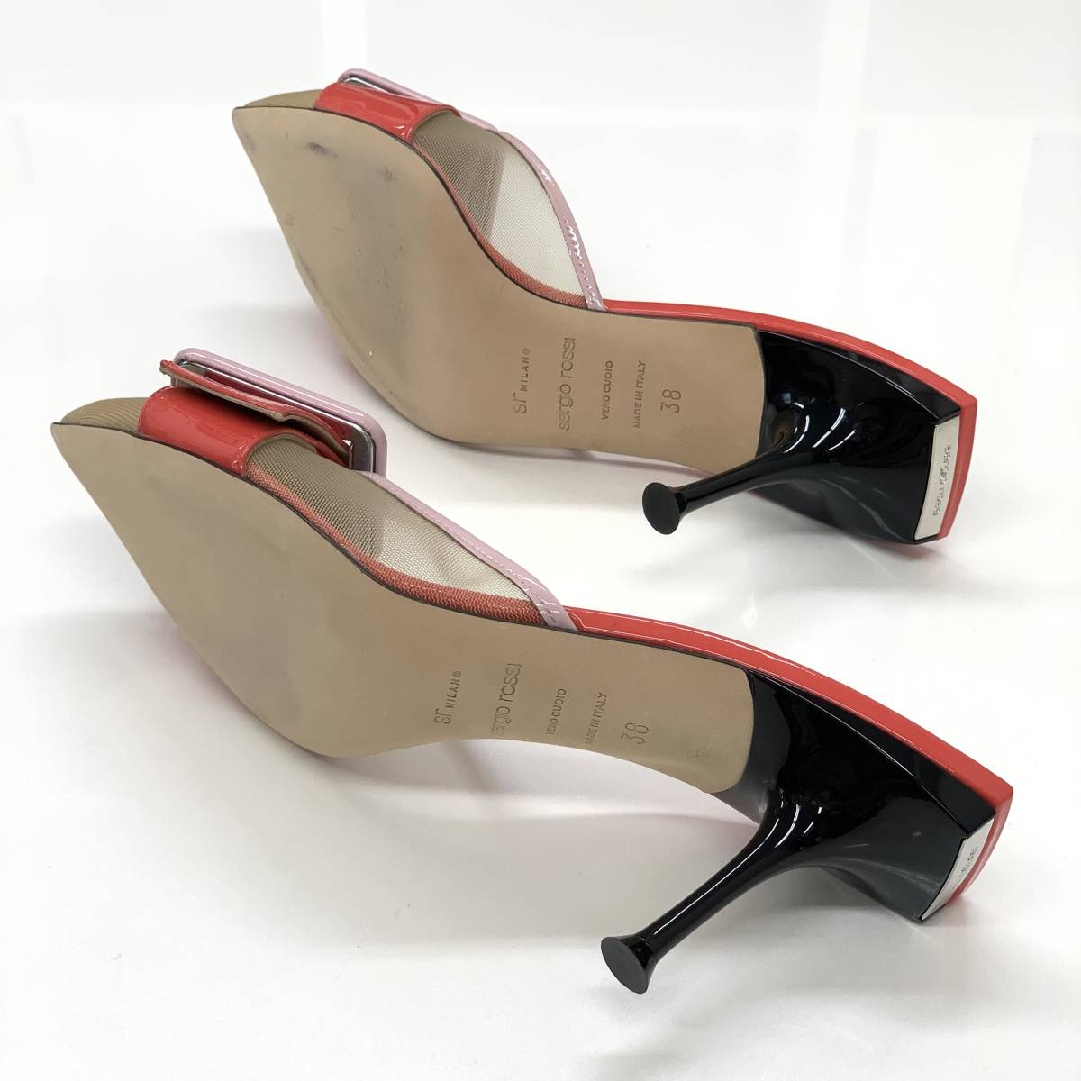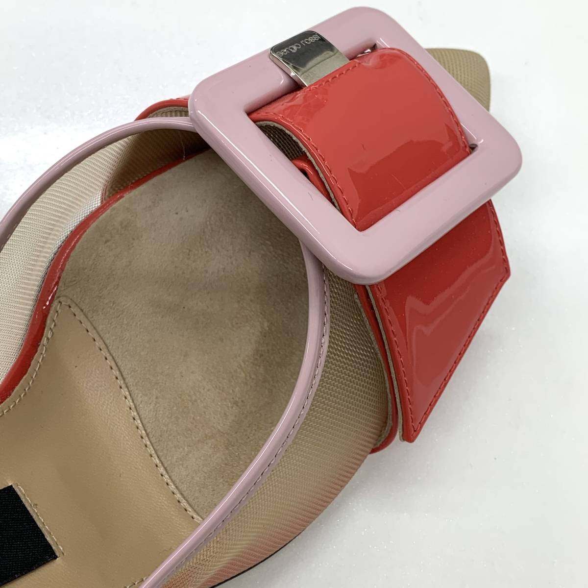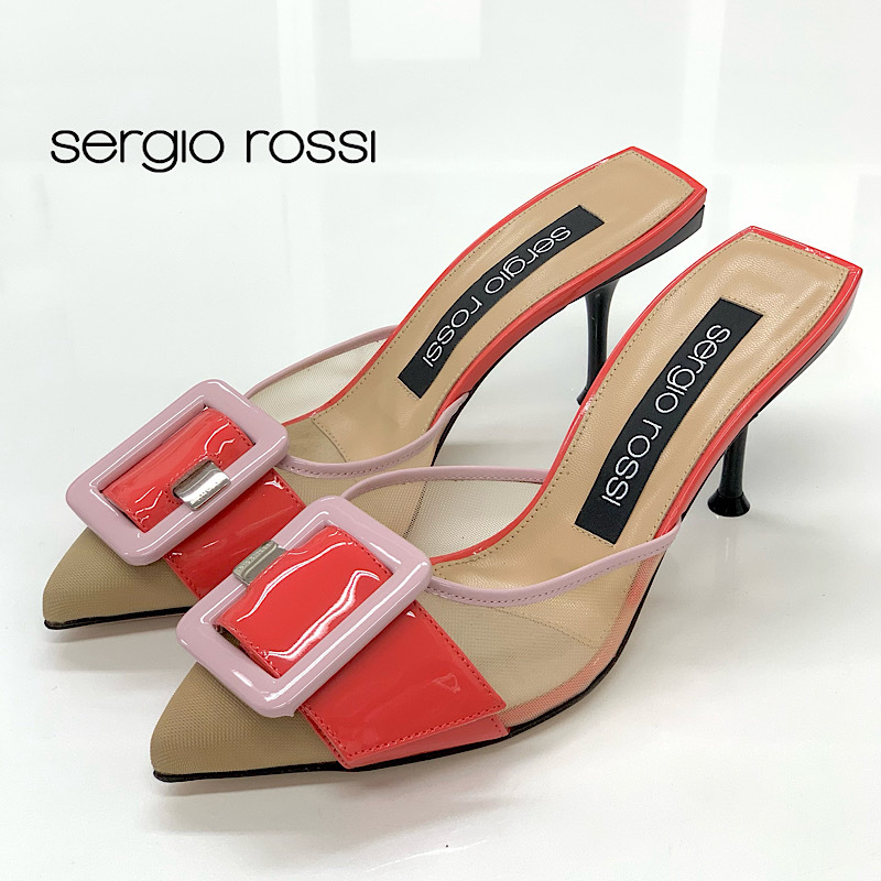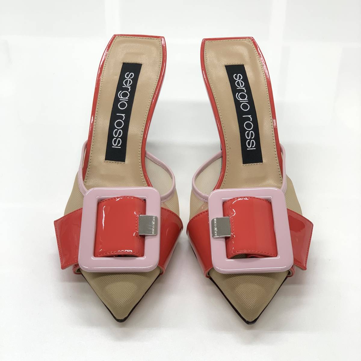 セルジオロッシ パテント メッシュ バックル パンプス レッド系