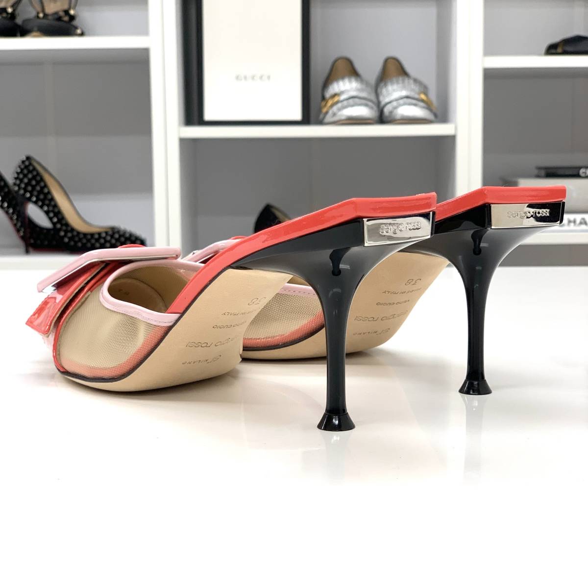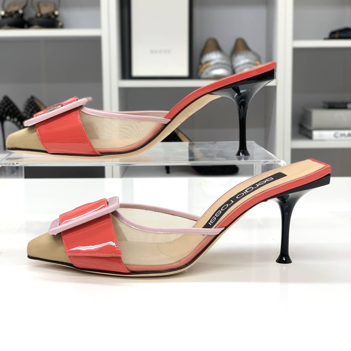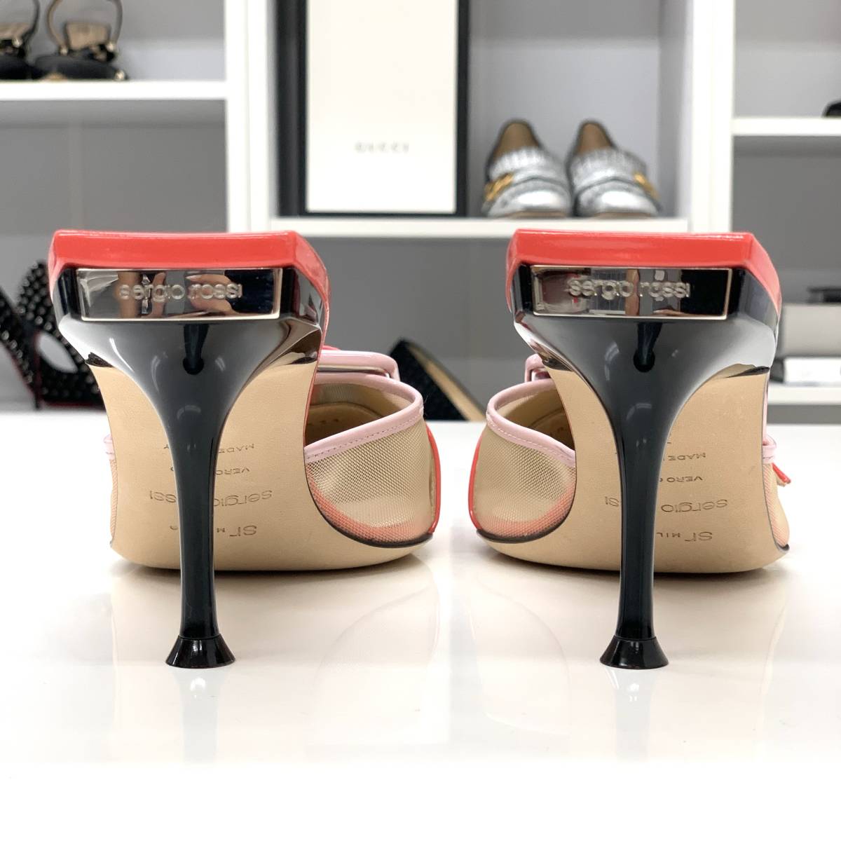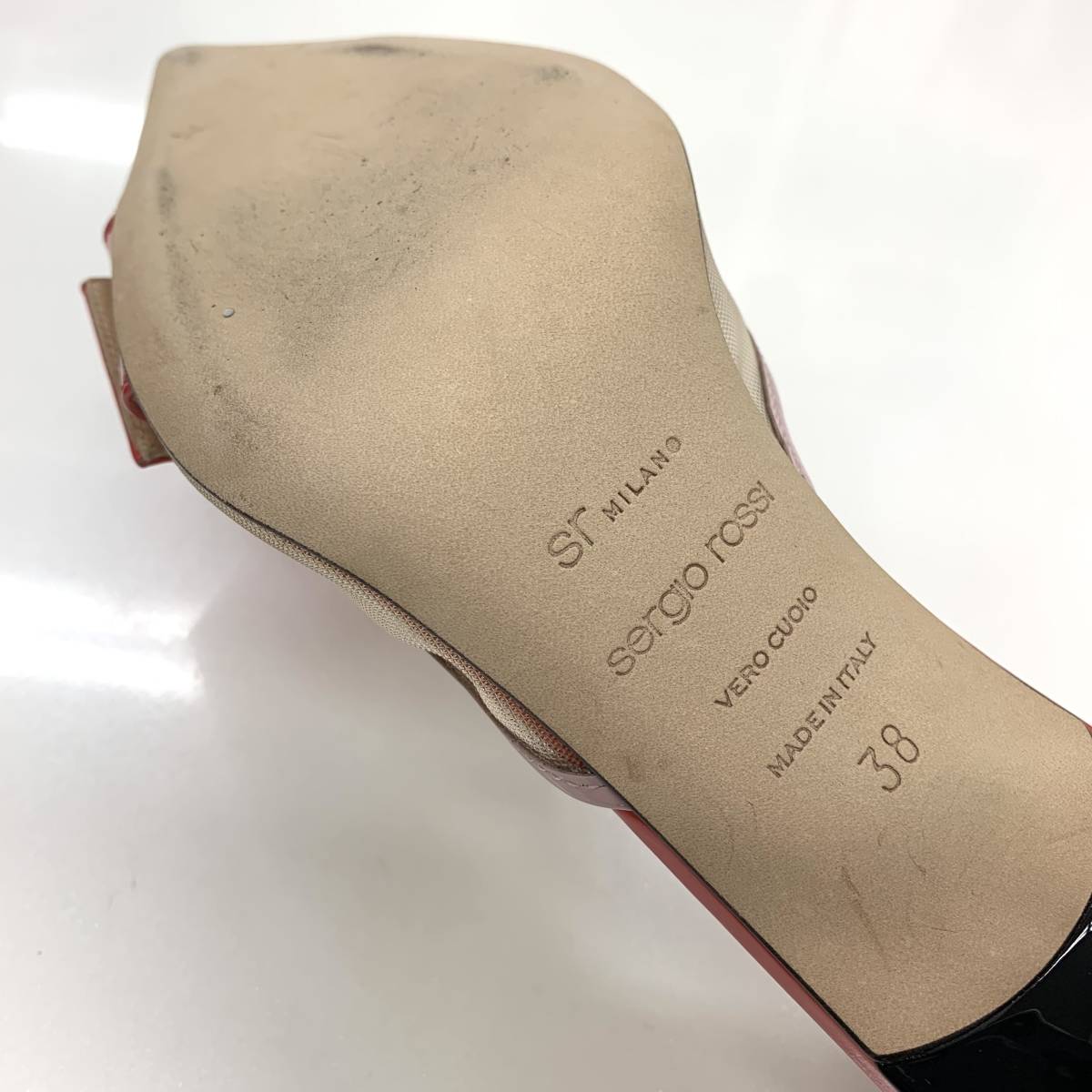 セルジオロッシ パテント メッシュ バックル パンプス レッド系
