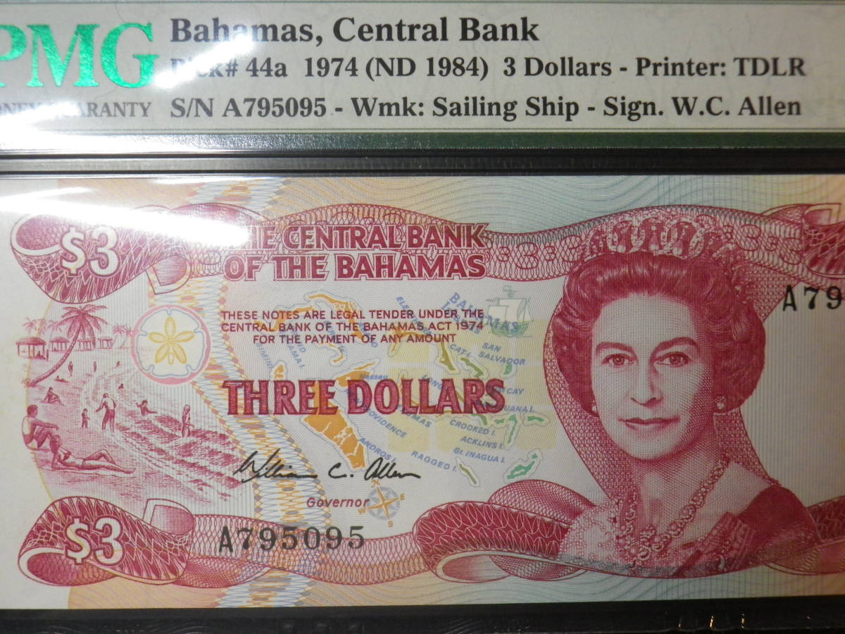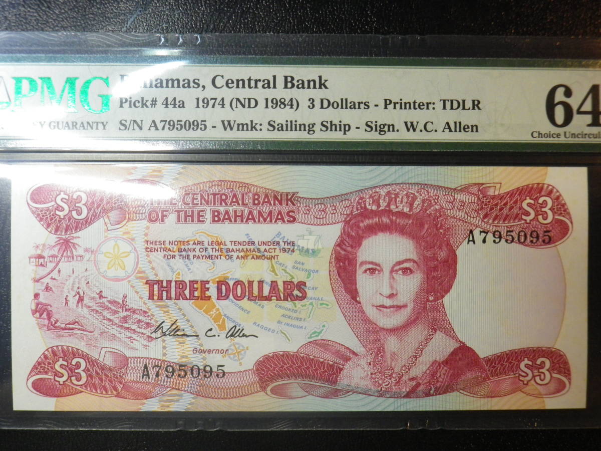 バハマ 1974年 3Dollars 未使用 p-44a PMG 64 (TDLR印刷)