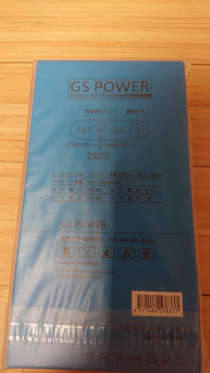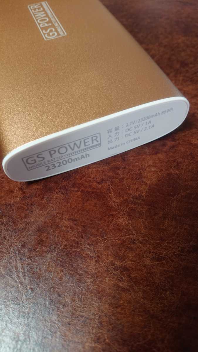 パナソニック製リチウムイオンを使用したGS POWERのモバイルバッテリーです。23200mAhの大容量です。カラーはゴールドになります。画像5、6、7は商品とカラーのサンプルとなっております。