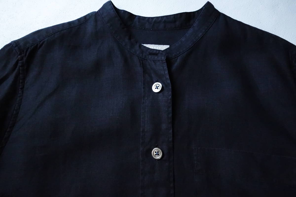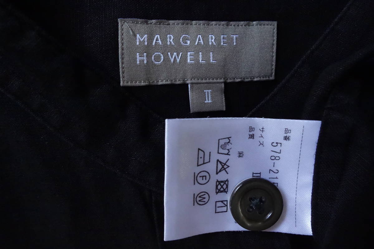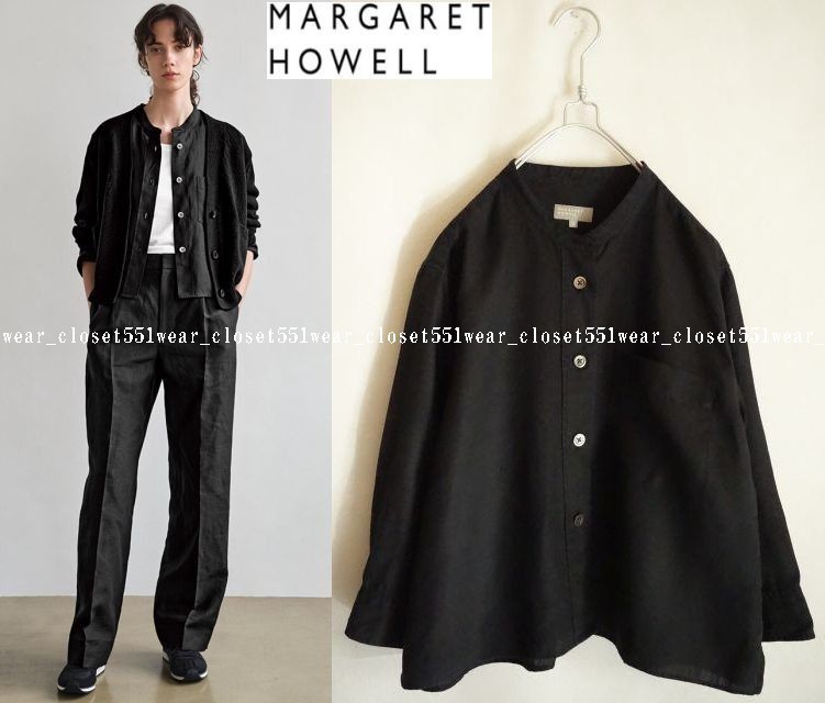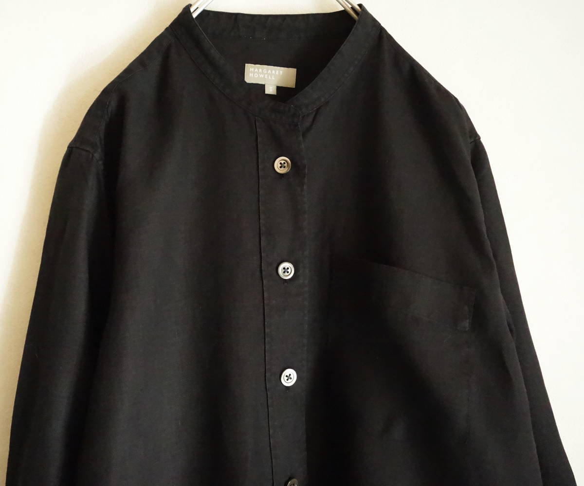MARGARET HOWELLのSHIRTING LINENカラーレスシャツ。2022S/Sの定価33000円で、LOOKBOOK掲載商品。さらりとした質感のヨーロッパリネン100%素材を使用。上質なリネン素材はマーガレットハウエルの夏素材を代表するひとつ。丁寧に仕上げられた素材は、薄手で透け感があり余分な毛羽を除きつつも、麻糸のムラが良い雰囲気◎短めの着丈ですっきりとして、