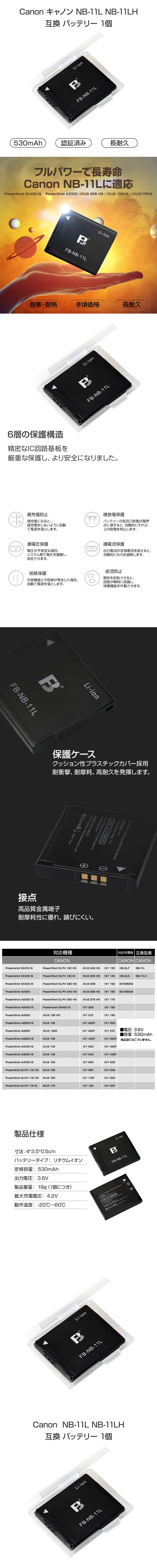 | NB-11L NB-11LHに互換するバッテリー1個です。純正品ではございません |