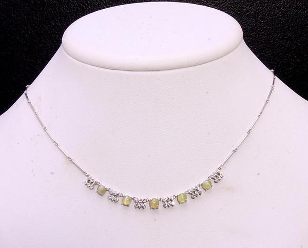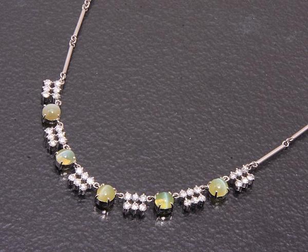 クリソベリルキャッツアイとダイアが煌く繊細なネックレスです。