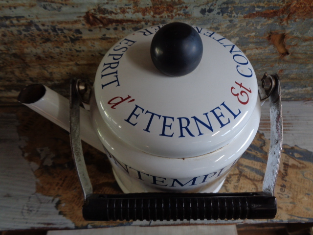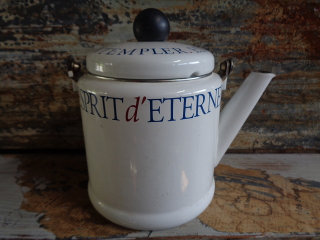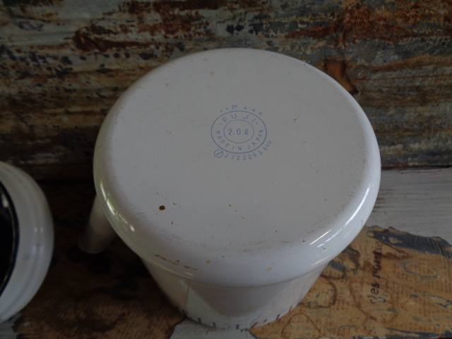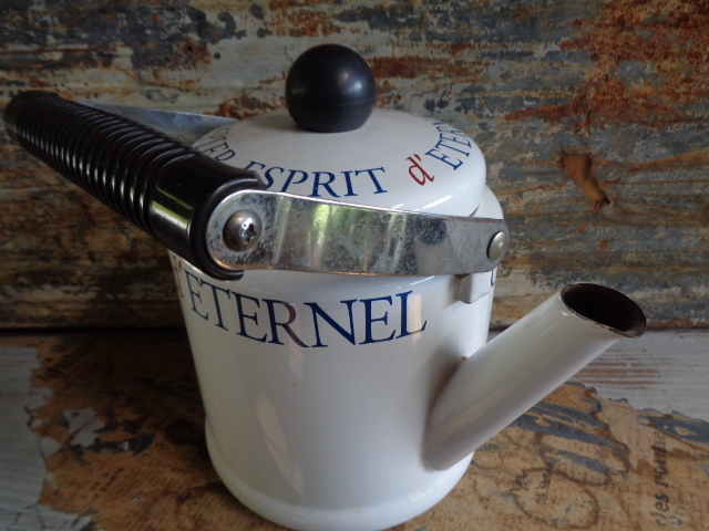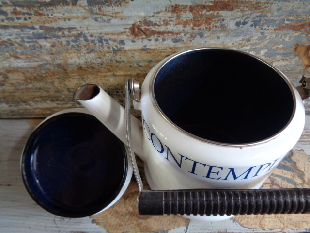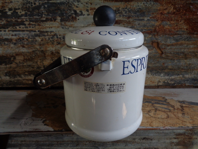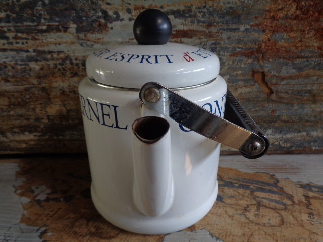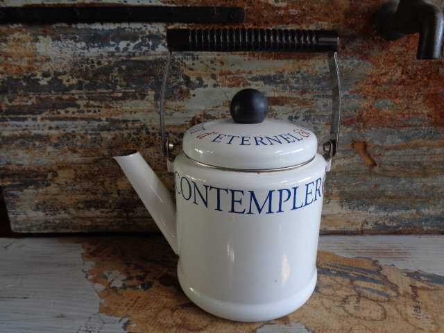 【ホーローのケトル】昭和レトロモダン古道具チェーンアンティークやかんポット薪ストーブカフェコーヒーポットティーポット