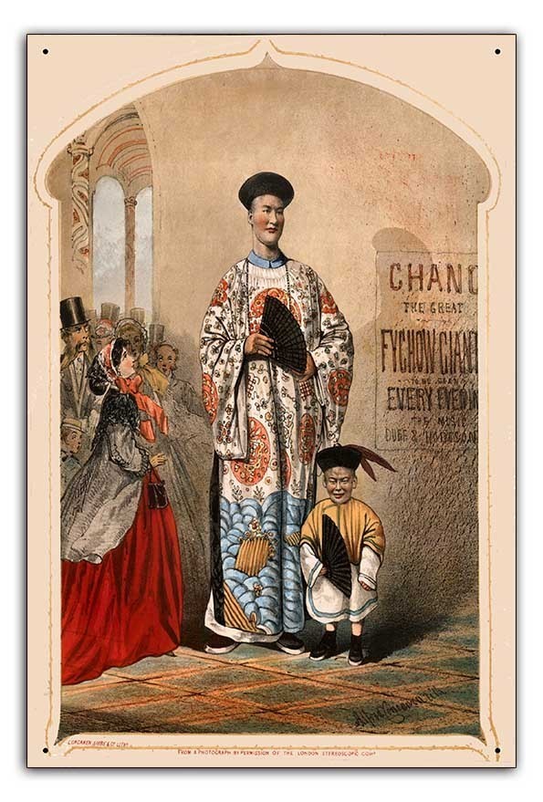 雑貨【サーカス ヴィンテージ】circusティンサインメタルプレートブリキ看板/レトロアンティーク風/28-Chang the great Fychow giant 1850s