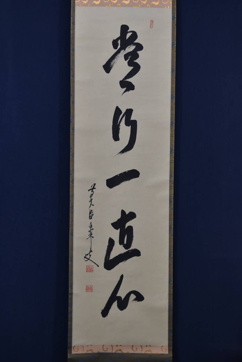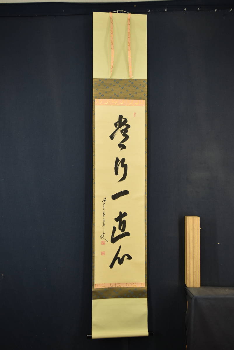 真作/大徳寺/前大徳香林/大橋香林/一行書/常行一直心/茶道具/茶掛/禅語//掛軸☆宝船☆Z-895