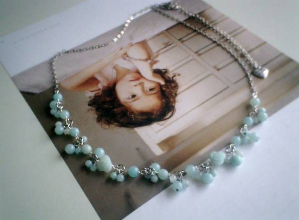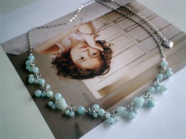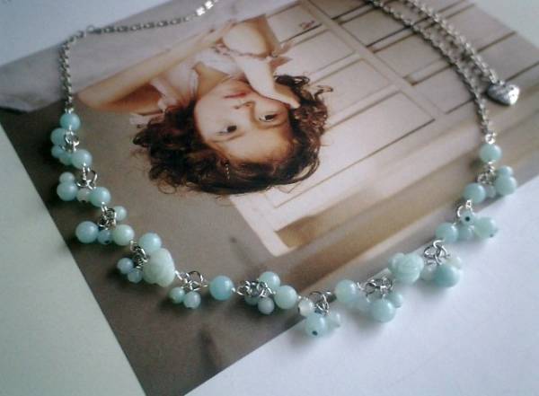 やさしい春色・・シリーズです♪可憐な水色・・繊細なアマゾナイトのネックレスです♪丸玉や薔薇のアマゾナイトに華奢なチェーンを合わせてやさしい表情です♪4ミリ、6ミリの丸玉、12ミリの薔薇のアマゾナイトは小さな花束のように集めました♪長さは全長65センチ位で調節自由です♪お揃いのネックレスやブレスレットも出品しています♪♪シンプルで飽きのこないいつまでも着けられるデザインを考えて作りました!ハンドメイドをご理解頂いてノークレーム、ノーリターンでお願いします
