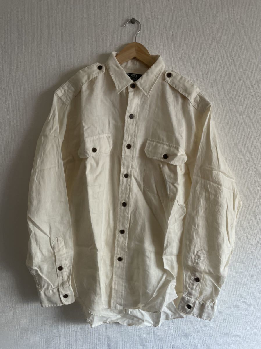 ミリタリーデザインですが、リネンなので程よい抜け感です。大きめのシルエットなので、肩の落ちも楽しめます。