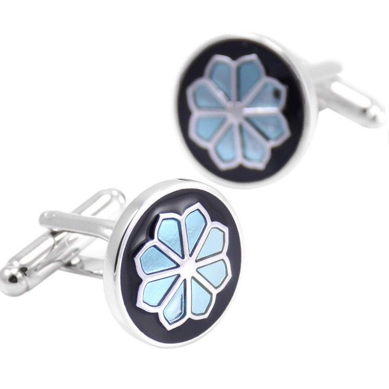 | 商品名 | [黒 と 水色 の 花 カフス] 植物 フラワー 桜 ブラック 菊 スカイ・ブルー 銀 シルバー・メッキ |