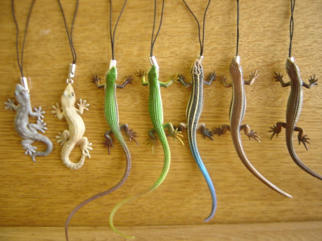 ストラップタイプ 1.ニホントカゲ(幼体) 2.ニホントカゲ(成体) 3.ニホンカナヘビ 4.アオカナヘビ(♂) 5.アオカナヘビ(♀) 6.ニホンヤモリ 7.ホオグロヤモリ 8.ニホンヤモリ(捕食) ◇壁に張り付く姿はまるで本物! トカゲは11cmオーバー!! 限界に挑むクオリティとボリュームを実現! |