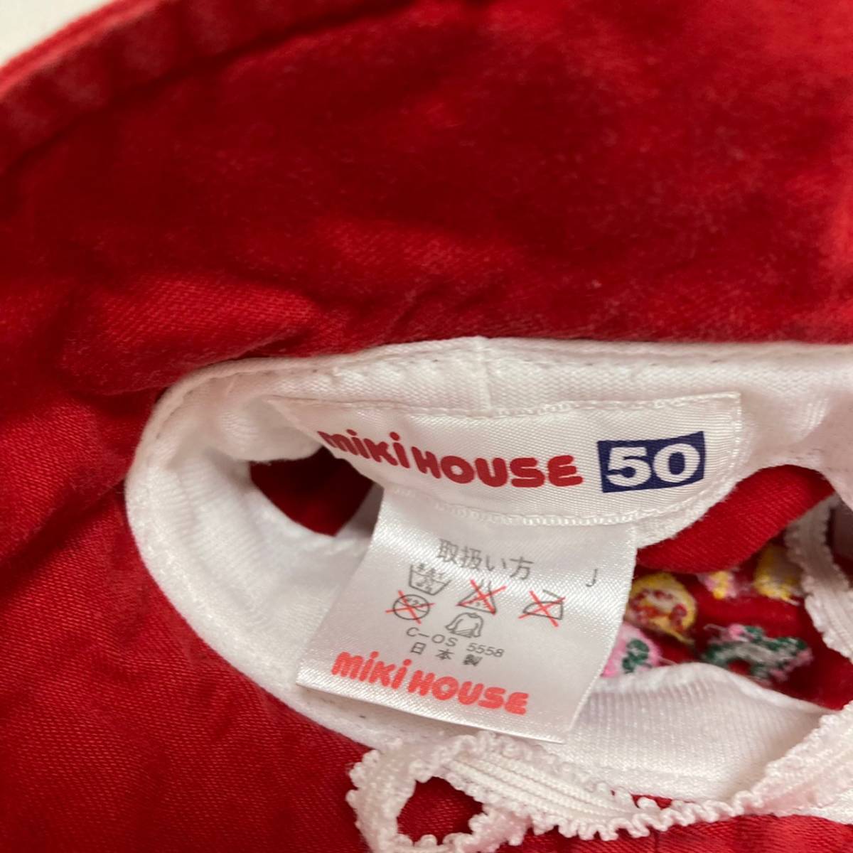 商品: MIKIHOUSE/ミキハウス キッズ 帽子 ハット レッド 赤 ロゴ刺 50サイズ