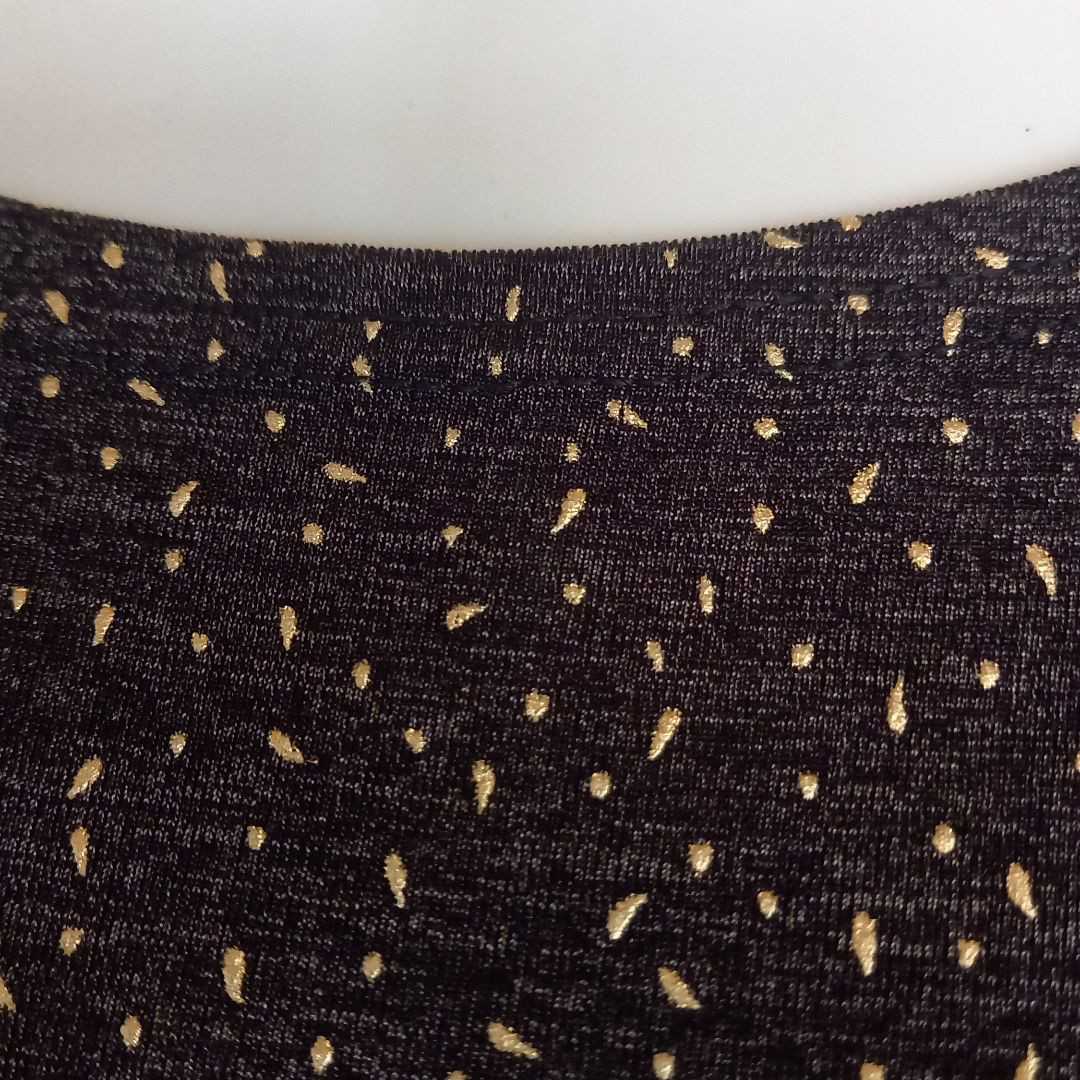 首もとから裾にかけて滴型のラメが、大きくなっていくゴージャスなトップス