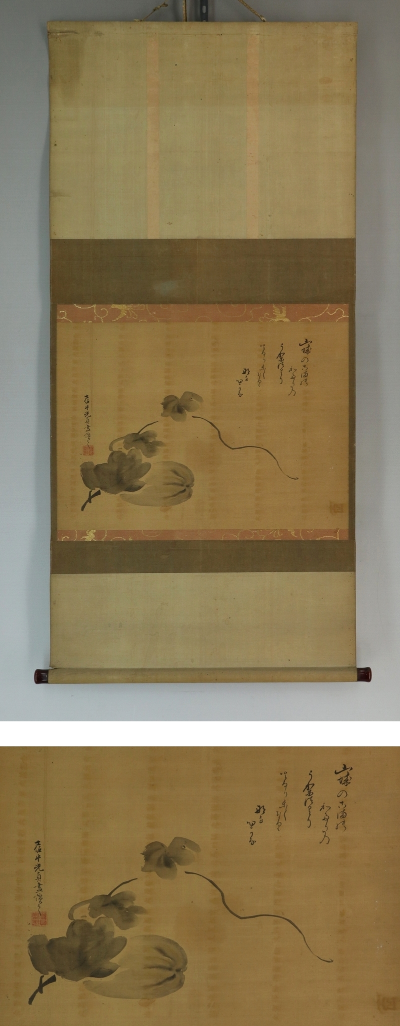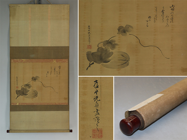 | №2205209【真作】土佐光貞【瓜画賛】◆絹本◆合箱◆掛軸 | |