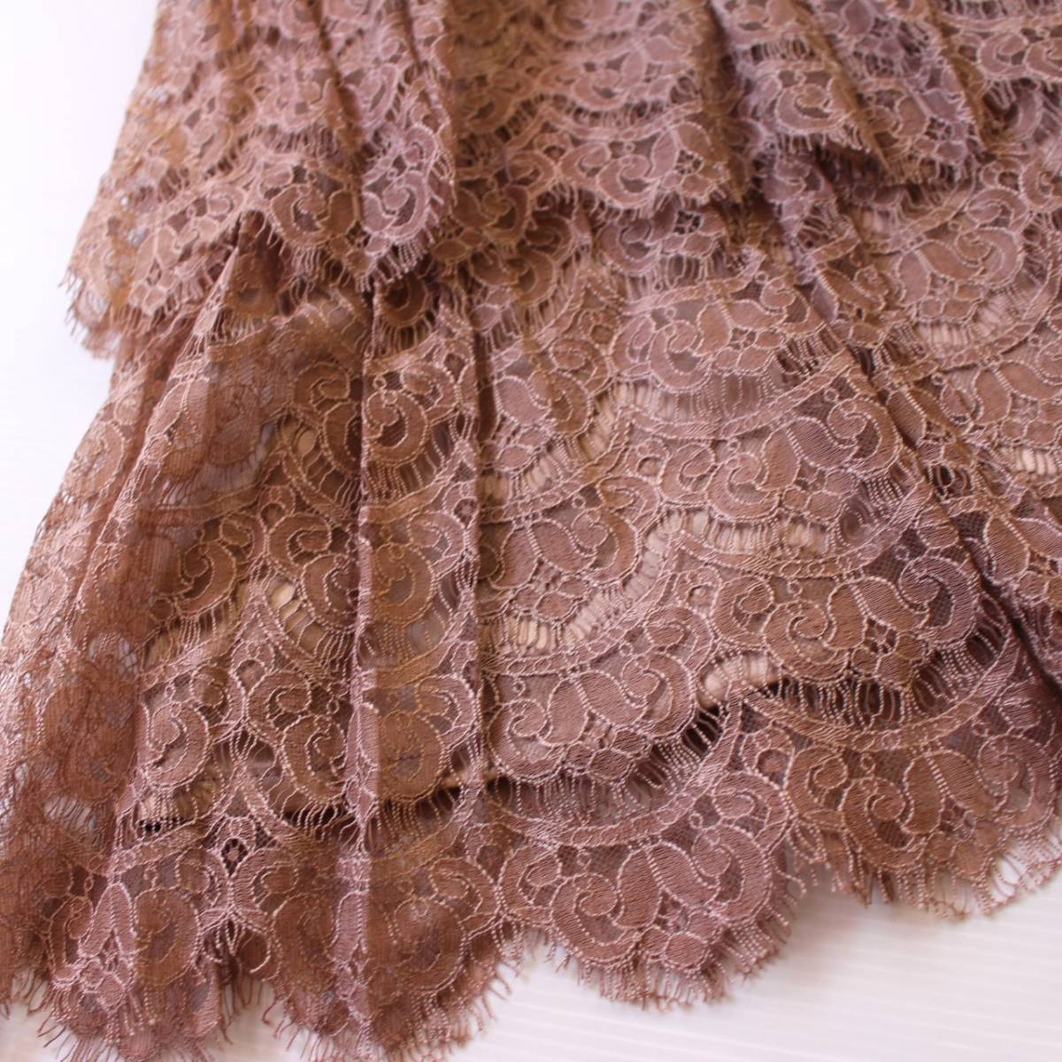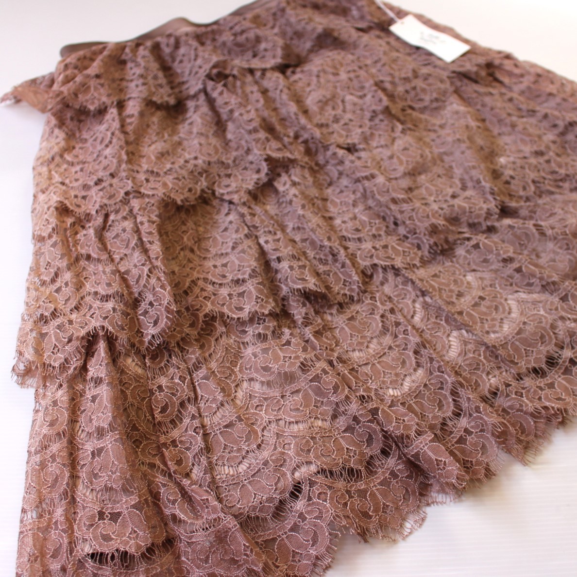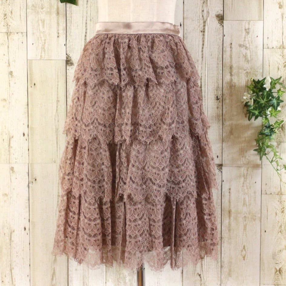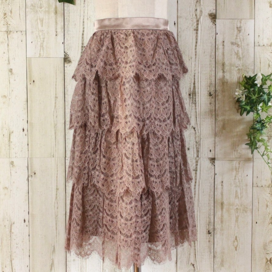 新品★Hisako Takayamaヒサコタカヤマ★ティアードレースミモレ丈スカート ドレスミディアム丈 おしゃれパーティーピンクベージュ