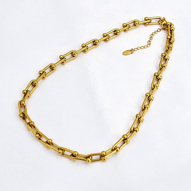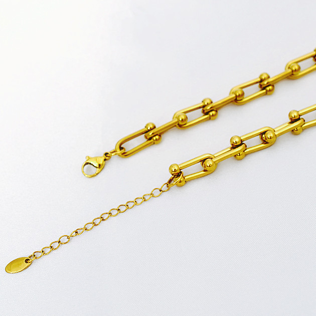 ●金属素材:ステンレス 。●カラー:18KGF。●チェーン長さ:長さ約42cm 、アジャスター約5cm 、全長約47cm。●チェーン幅:約8mm。●重さ:約41g。