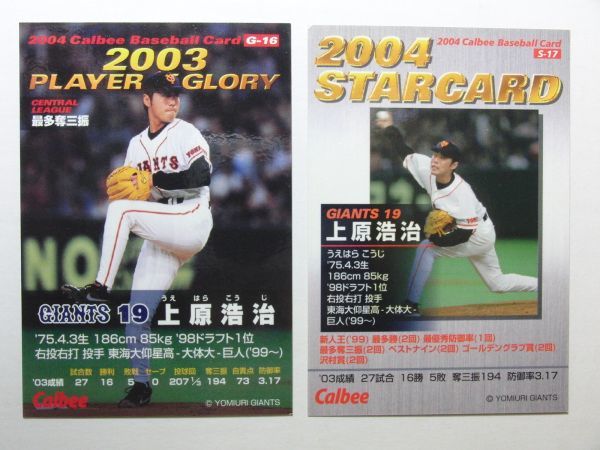 上原浩治 スターカード等 2種セット カルビー 巨人 ジャイアンツ★プロ野球チップス★2004★プロ野球カード★ です。