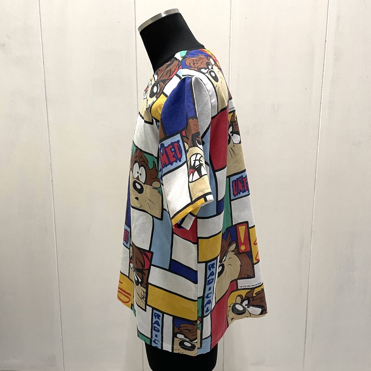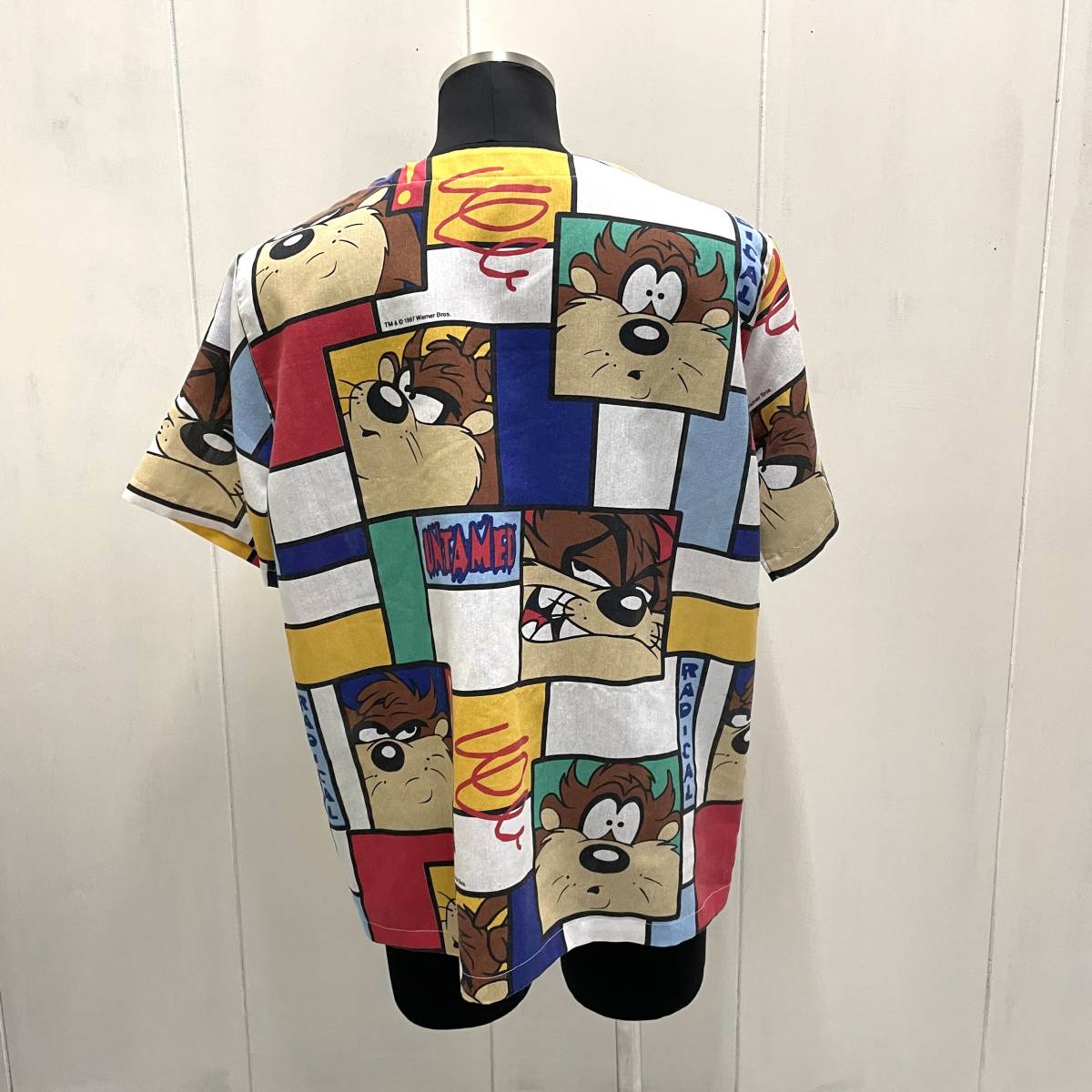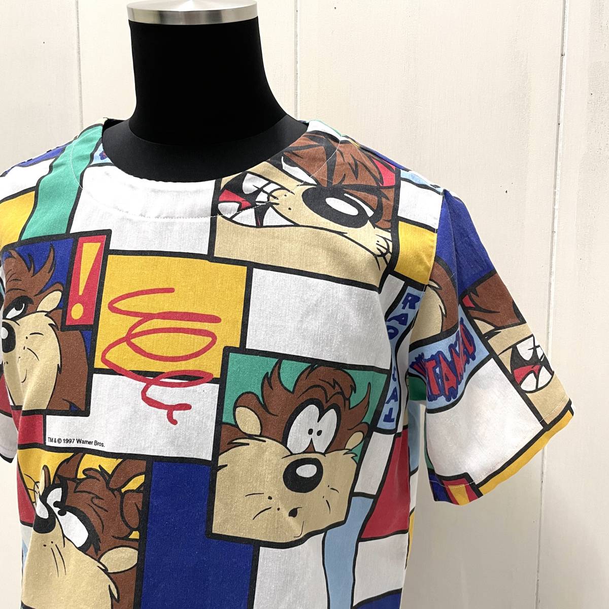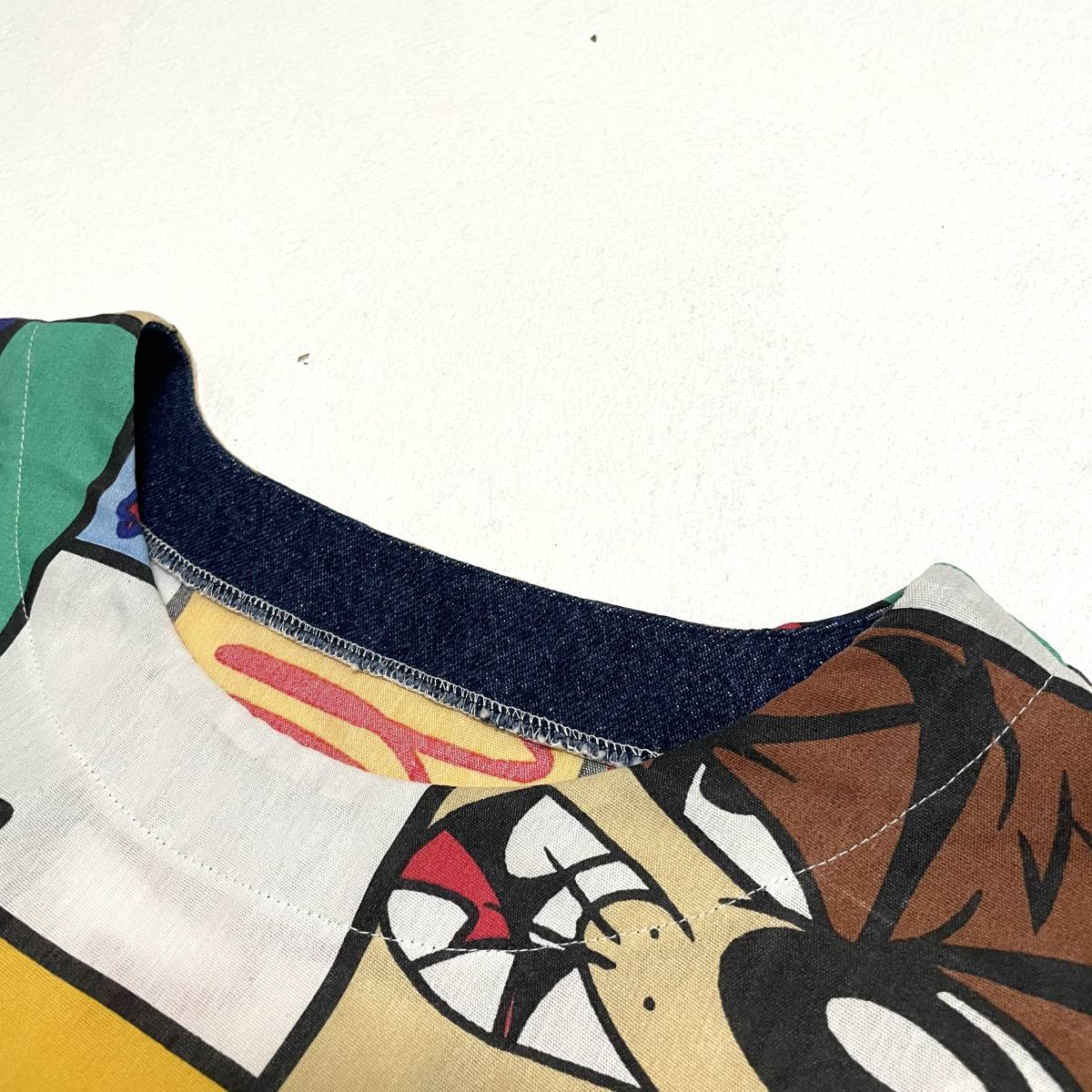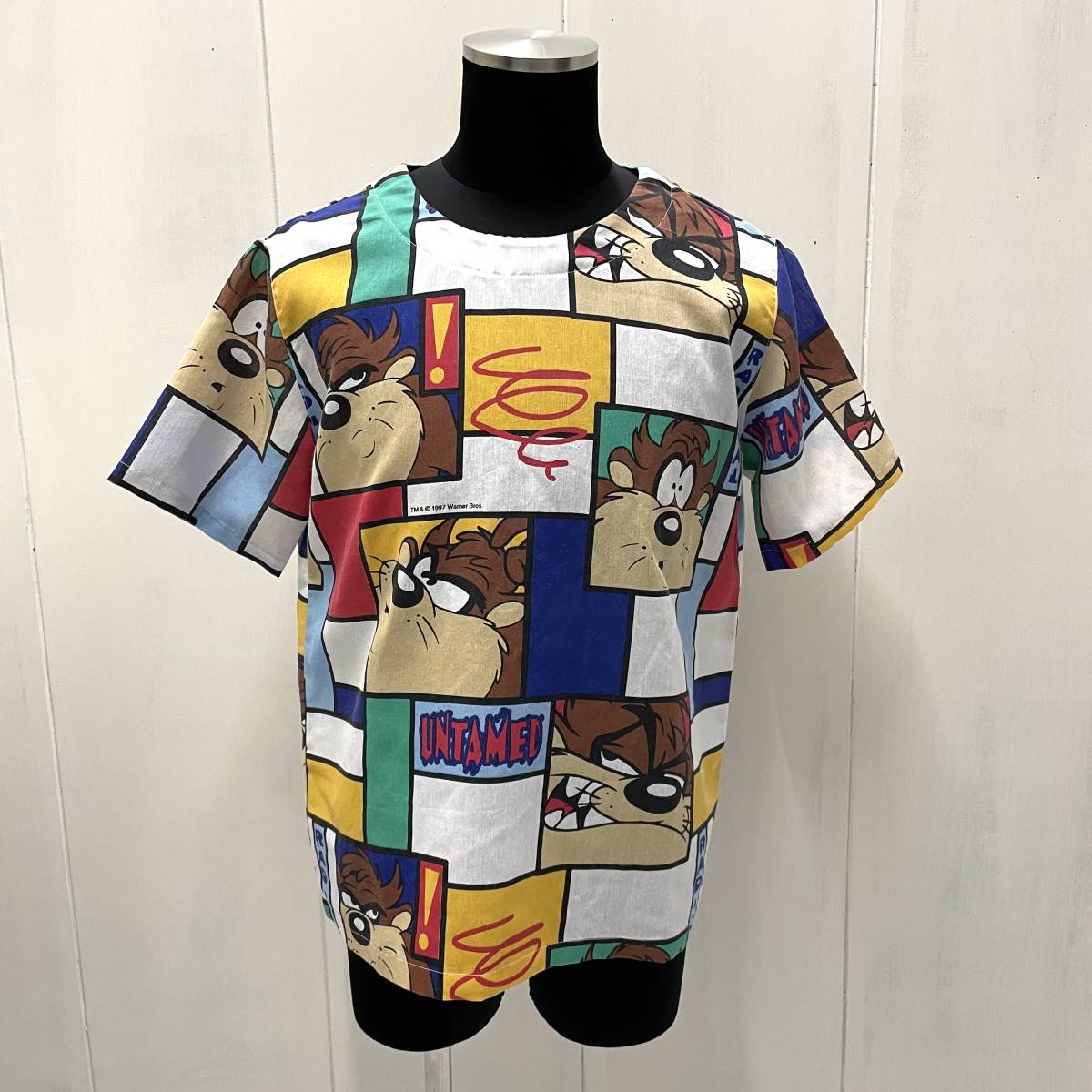 90年代のビンテージベッドシーツがリメイクされたTシャツです。 コピーライトは1997年。 薄手のシャツのような生地です。 プロの職人さんの一点もの。襟裏にはデニム生地が付いた丁寧な作りです。 洗濯済みになります。お探しの方におすすめです。 | |||