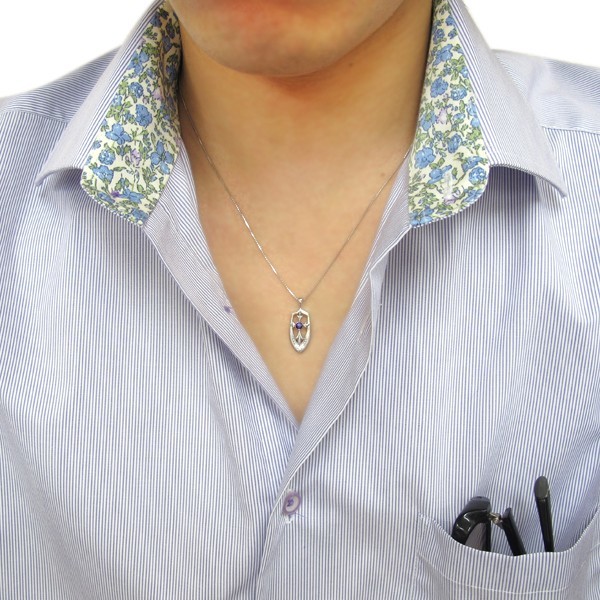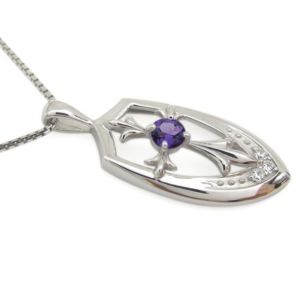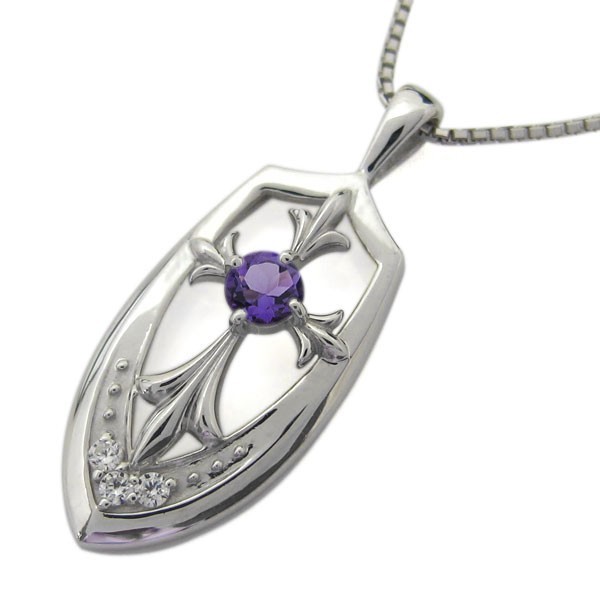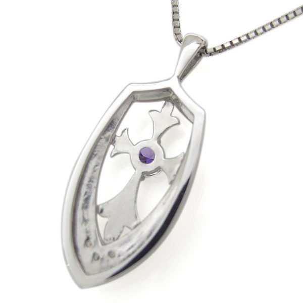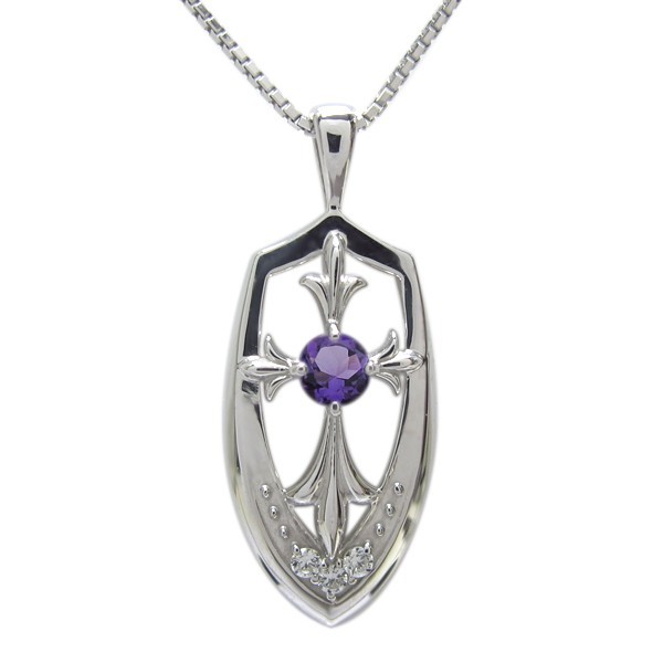 2月誕生石アメジストを使用したプラチナ製のクロス(十字架)モチーフメンズネックレス・ペンダントです。