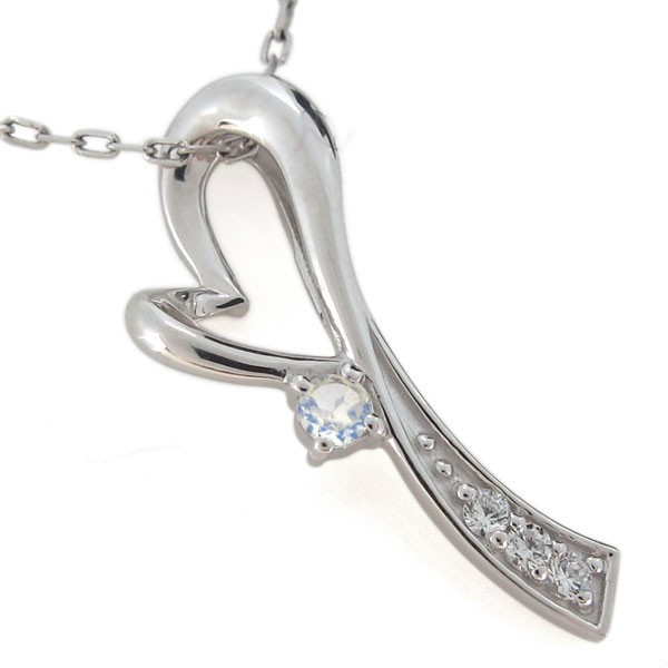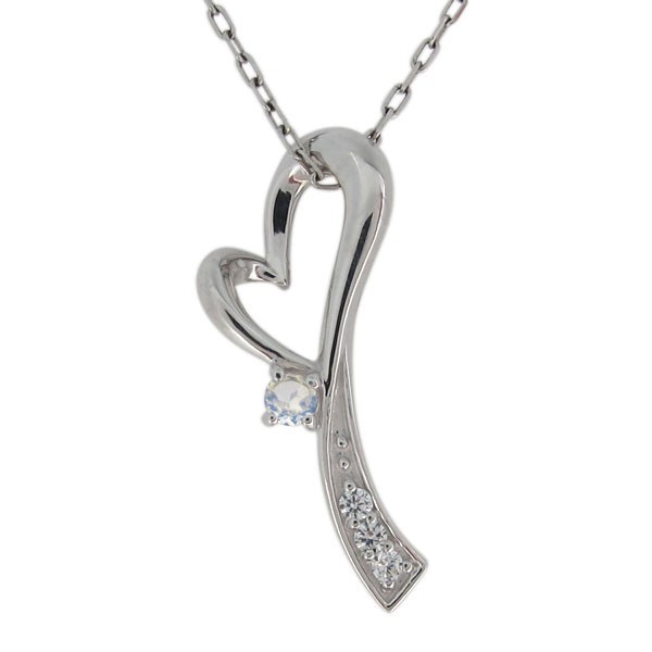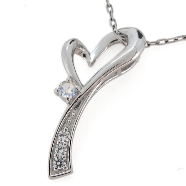 6月誕生石ロイヤルブルームーンストーンを使用したプラチナ製の、ハートモチーフレディースネックレス(ペンダント)です。
