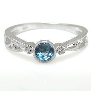 ■石名:主石 ブルートパーズ(約 4.0mm/天然石使用)脇石 ダイヤモンド(2石合計で約 0.03ct/天然石使用)