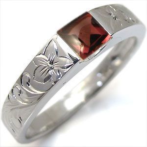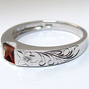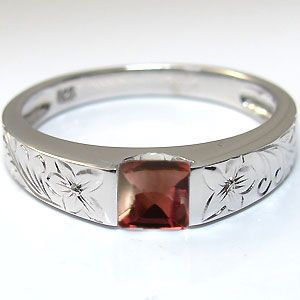 ハワイアンジュエリー:リング:ロードライトガーネットリング1月誕生石ロードライトガーネットを一粒使用したプラチナ製のハワイアンリング(指輪)です。