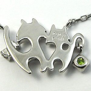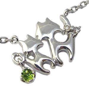 8月誕生石ペリドットを一粒使用した10金製のネコ(猫)モチーフアンクレット兼用ブレスレットです。