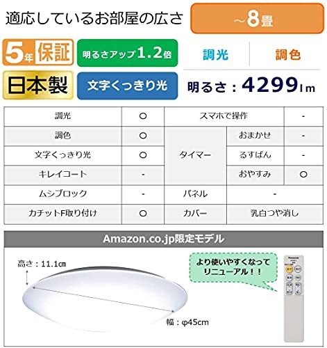 ・ホワイト 2)8畳 HH-CF0820AZ・・Size:2)8畳Style:2)シンプル(調光・調色)・幅広い世代が使いやすいリモコンデザインにリニューアル・ 個室にも溶け込む、カバー直径45cm・ 全灯から更に明るさアップ 明るさ1.2倍モードを搭載・ 付属品:専用リモコン送信器〔HK9811MM〕同梱 (リモコンボックス付)・ 本体寸法:幅φ450・高111mm、本体質量:1.2kg・幅広い世代が使いやすいリモコンデザインにリニューアル・個室にも溶け込む、カバー直径45cm・全灯から更に明るさアップ 明るさ1.2倍モードを搭載・「調光」・「調色」機能搭載・小さな文字もくっきり読みやすい「文字くっきり光」搭載