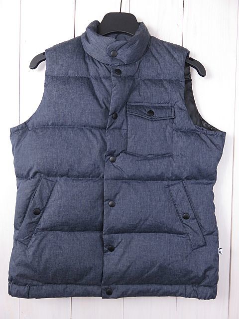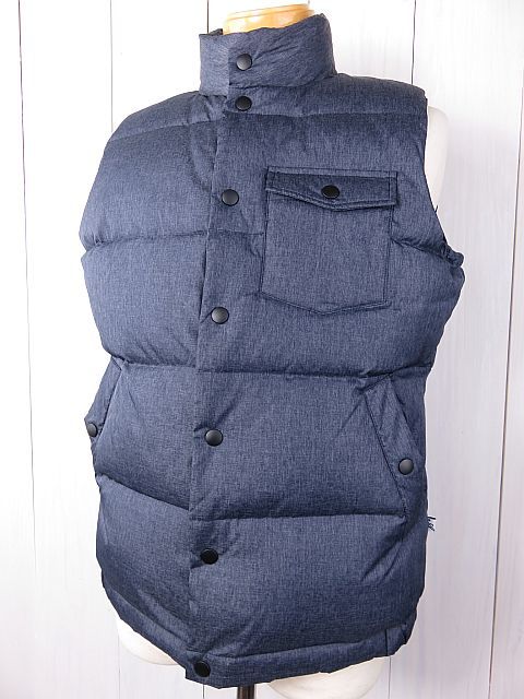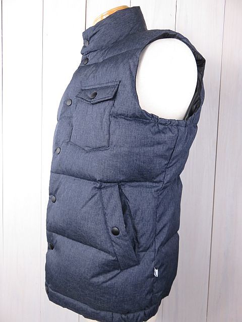 ダウンベスト/ボトルネック、センタースナップボタン、左胸ポケット、両サイドポケット