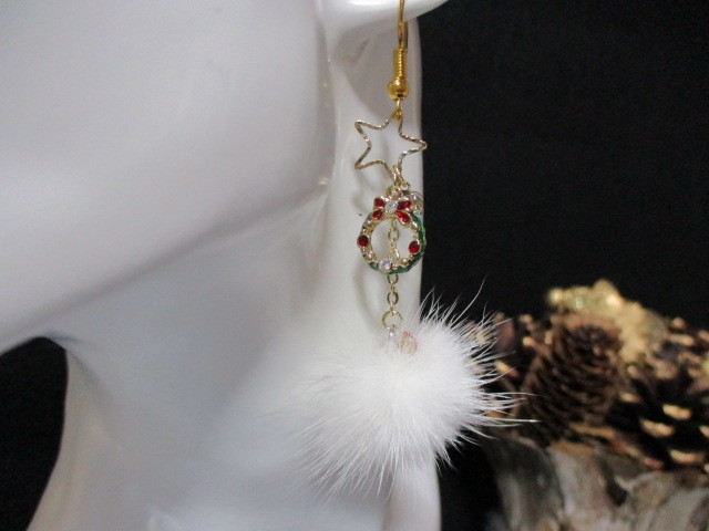 ピアス イヤリング クリスマス イベント 等 オリジナル デザイン 新品 未使用 限定 チャーム スター クリスタル ボンボン 写真詳細参照 1