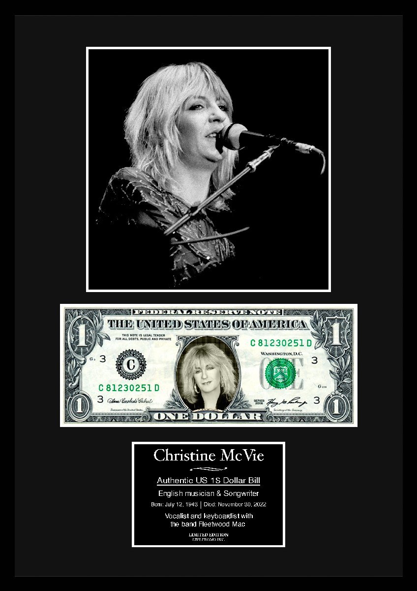 『クリスティン・マクヴィー/Christine McVie(クリスティン・パーフェクト)』の本物の1ドル札 ディスプレイ 証明書付き となっております。  ☆