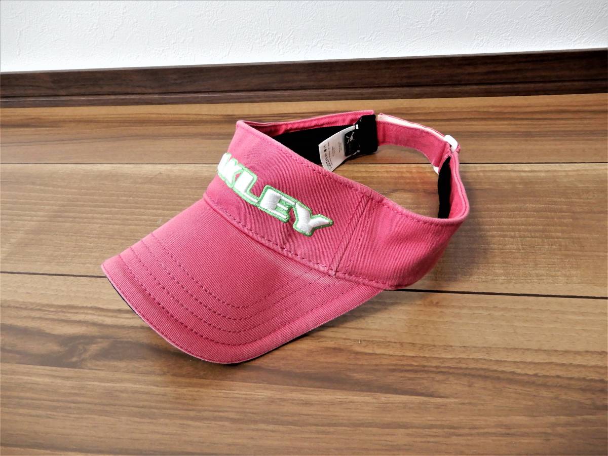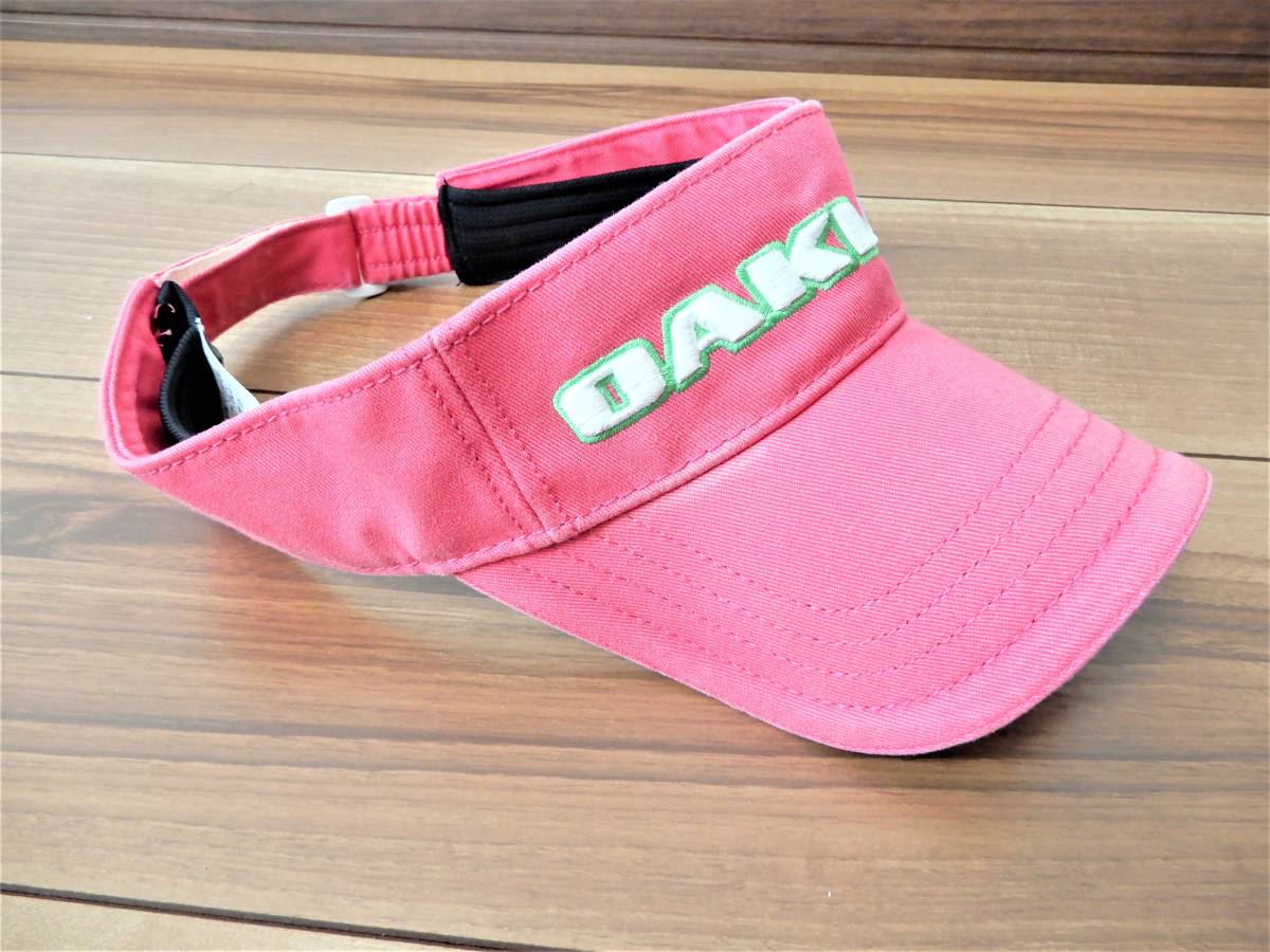 中古 OAKLEY オークリー 立体ロゴ刺繍 サンバイザー キャップ 帽子 GOLF ゴルフ ピンク/エメラルドグリーン
